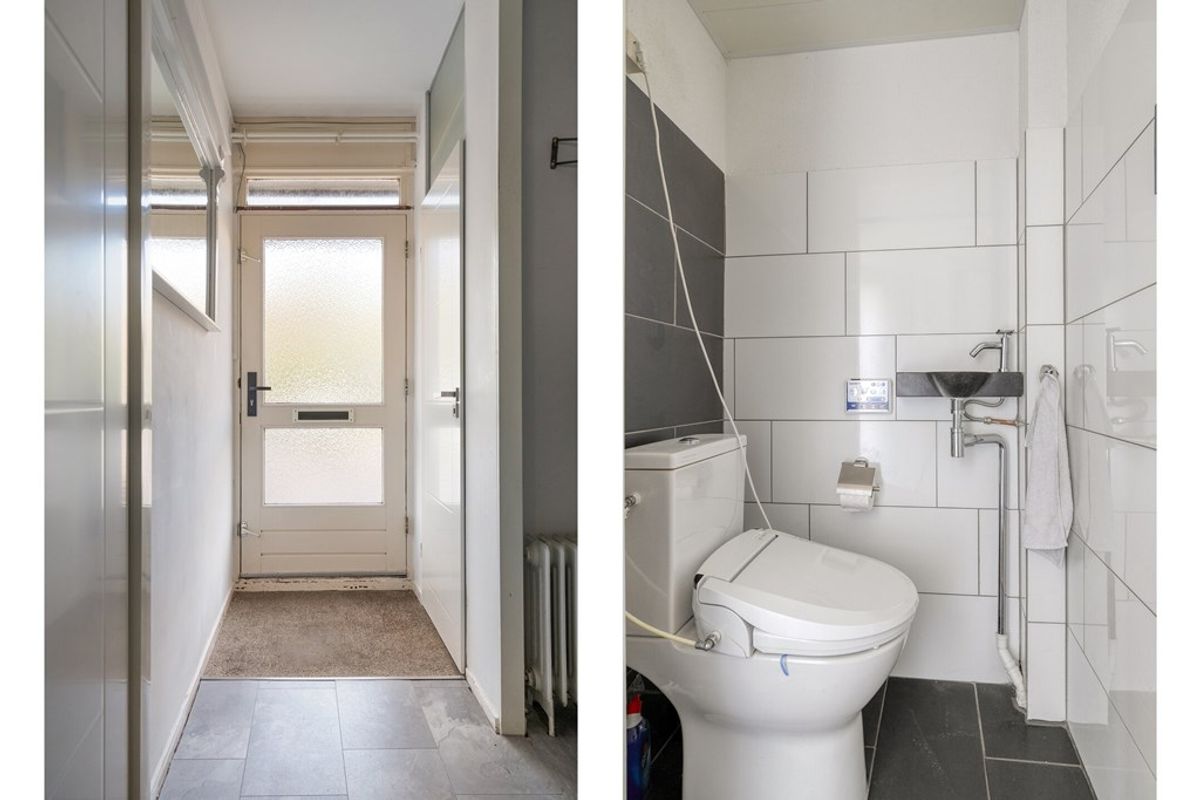 Entree met ruime hal, meterkast en een net toilet met een fontein. Vanuit de hal stap je de lichte woonkamer binnen, voorzien van trapkast en veel raampartijen. De woonkamer kan eventueel nog vergroot worden door de berging erbij te betrekken. Ruimte is hier absoluut het sleutelwoord.