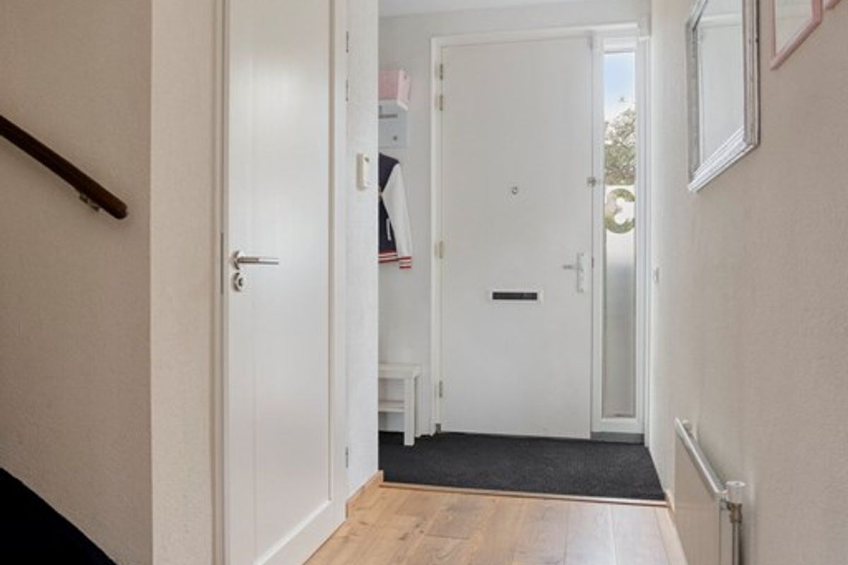 Via de entree kom je binnen in de hal met toilet, meterkast en trapopgang. De woonkamer is ruim, licht en tuingericht, met een prettige verbinding naar de halfopen keuken.