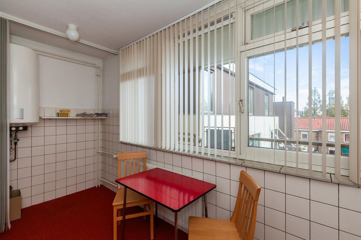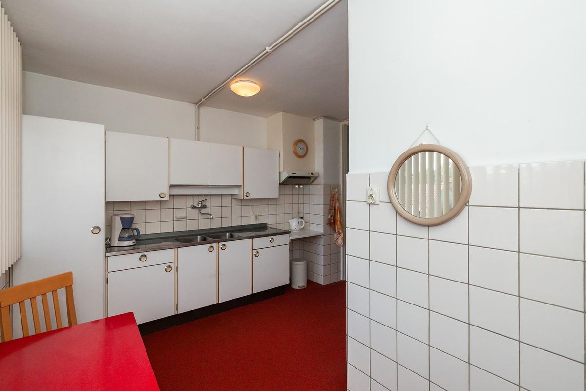 Ruime keukenruimte aan de voorzijde ca. 12.5m2 met rechte eenvoudige keukenoptelling. Ook de aansluiting voor de wasmachine en de elektrische boiler (eigendom) bevindt zich in de keuken.