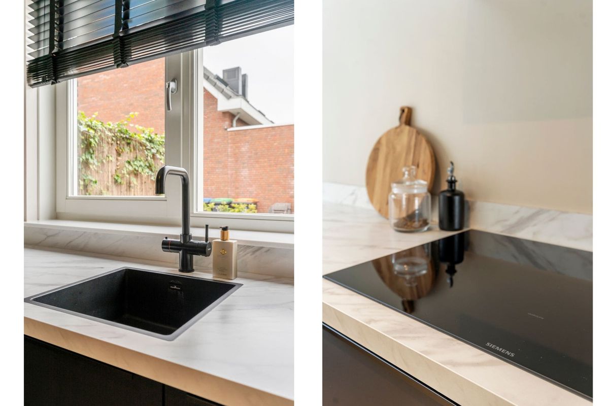 - Luxe keuken met kokendwaterkraan en hoogwaardig inbouwapparatuur;