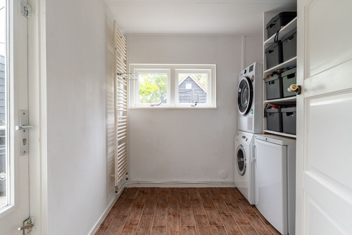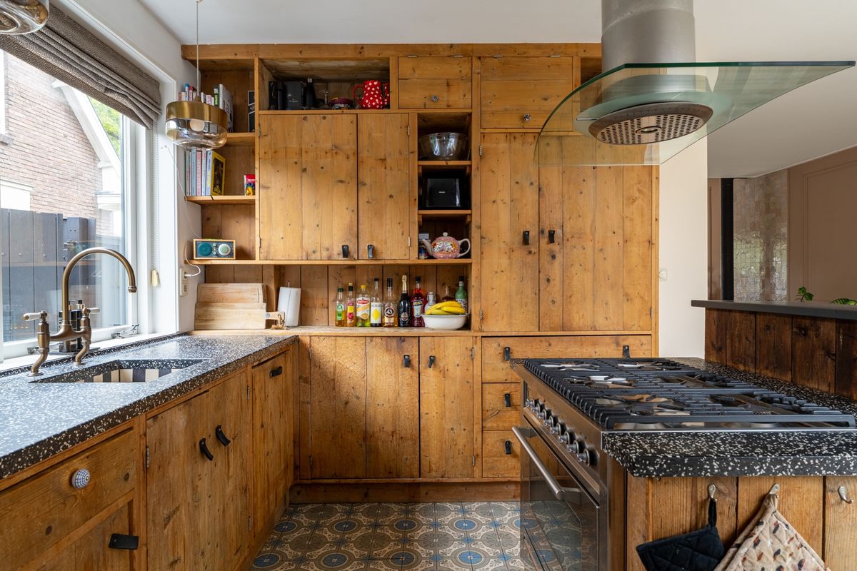 Stap binnen en voel direct de fijne sfeer. De woonkamer is licht, ruim en huiselijk tegelijk. De gave gietvloer met vloerverwarming zorgt samen met de houtkachel voor een behaaglijk gevoel op koude dagen, terwijl de grote ramen volop licht binnenlaten. De indeling is praktisch en gezellig: genoeg ruimte voor een royale zithoek en een grote eettafel. De open keuken vormt het hart van het huis. Het betreft een eigentijdse, handgemaakte houten keuken voorzien van alles wat je nodig hebt: een 6-pits gasstel, oven, vaatwasser, koelkast en een robuuste afzuigkap. Hier kook je niet alleen maaltijden, maar ook herinneringen. De bijkeuken is een praktische bonus met aansluitingen voor de wasmachine, een inbouwkast en extra werkruimte. Vanuit hier loop je zó de tuin in — handig voor vuile laarzen of modderige hondenvrienden. Alles is goed doordacht, degelijk uitgevoerd en keurig onderhouden. Je merkt gewoon dat dit huis met liefde is bewoond.