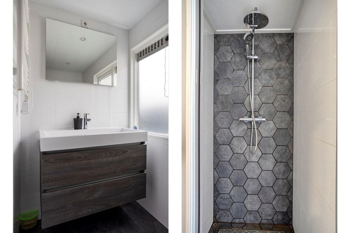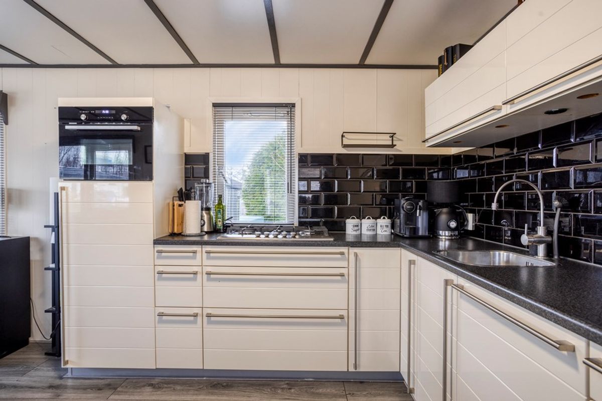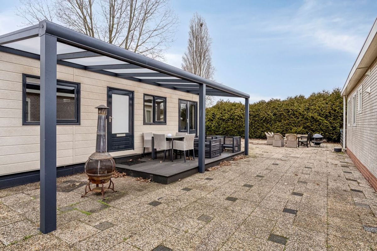 Rondom de woning ligt een ruime tuin, waardoor u altijd een fijne plek in de zon of schaduw kunt vinden. Op eigen terrein is ruimte voor twee auto’s. Daarnaast beschikt het chalet over een overkapping, ideaal voor beschut buiten zitten, en een aparte berging voor fietsen, tuingereedschap of extra opslag, incl. aansluiting voor wasmachine en droger.