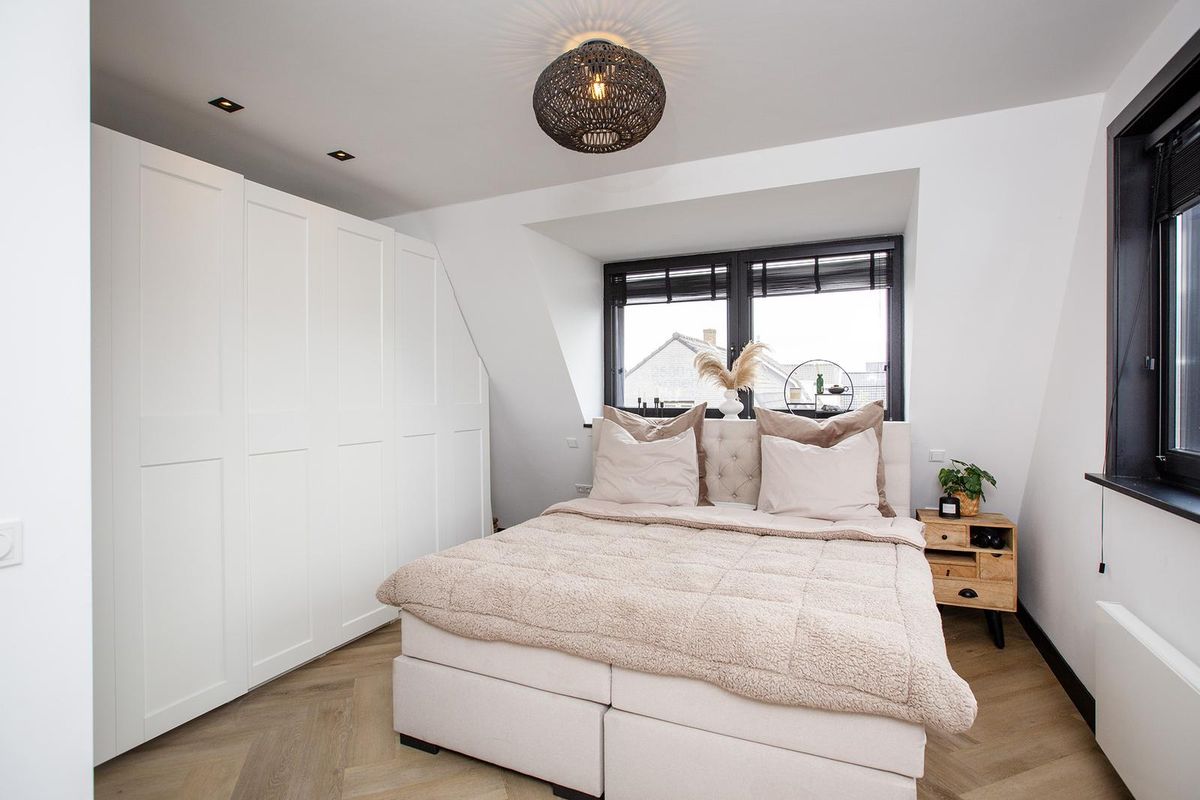 Ruime slaapkamer met tweepersoonsbed en opbergruimte. Badkamer met inloopdouche, toilet en wastafel met meubel. De bijwoning beschikt over een eigen ingang en biedt voldoende privacy ten opzichte van de hoofdwoning.