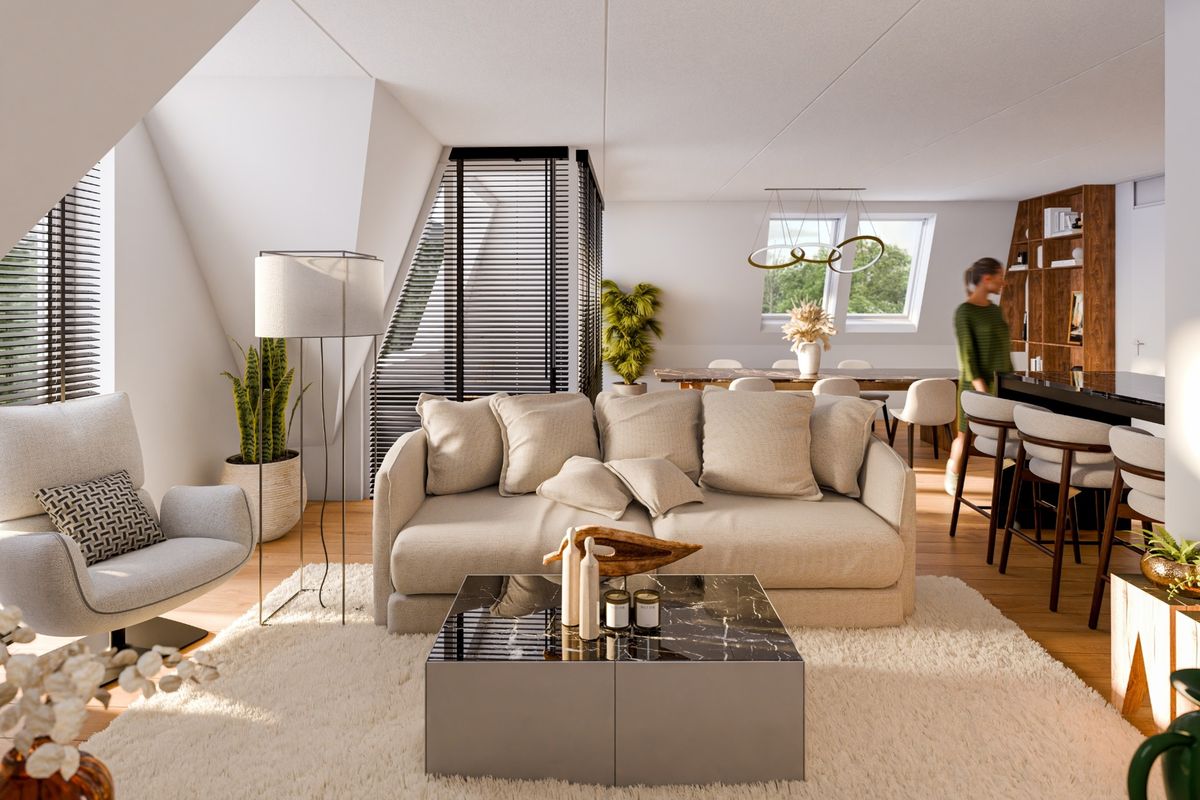 De heerlijke woonkamer en open keuken vormen het kloppend hart van de woning. Bij het appartement hoort een balkon van ca. 7 m². Jouw eigen zonnige buitenplek.