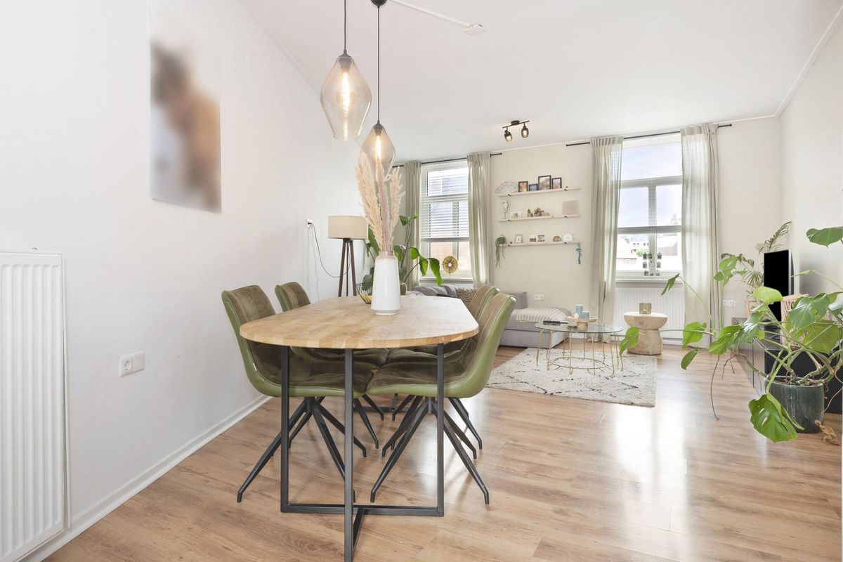 Op de begane grond, links van de delicatessenwinkel, is de gezamenlijke entree van slechts drie appartementen. Dit appartement bevindt zich op de eerste verdieping, te bereiken via een trap. Gaat u mee naar boven om dit superleuke appartement te ontdekken?