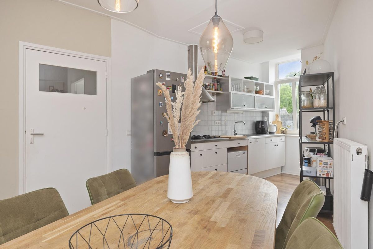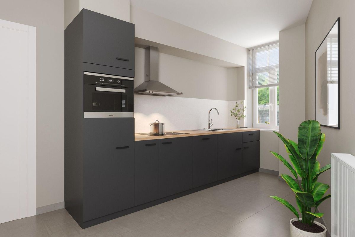 De woonkamer met open keuken valt op door de speelse indeling, met het zitgedeelte aan de kant van de Rijksweg. Daar heeft de woonkamer een breedte van 5.40 meter en twee grote ramen, waardoor veel licht naar binnen valt. Het eetgedeelte biedt genoeg plek om een grote eettafel neer te zetten en als de keuken met inbouwapparatuur is geplaatst, kunt u direct starten met koken en bakken. Dat wordt genieten! Hoe de keuken er uitziet? De impressie geeft een goede indruk!