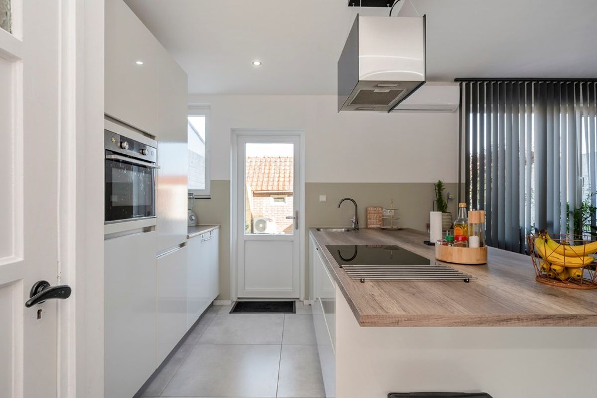 De moderne keuken (2023) is voorzien van een kookeiland en uitgerust met de volgende inbouwapparatuur: inductiekookplaat, afzuigkap, vaatwasser, oven, koelkast en diepvries.