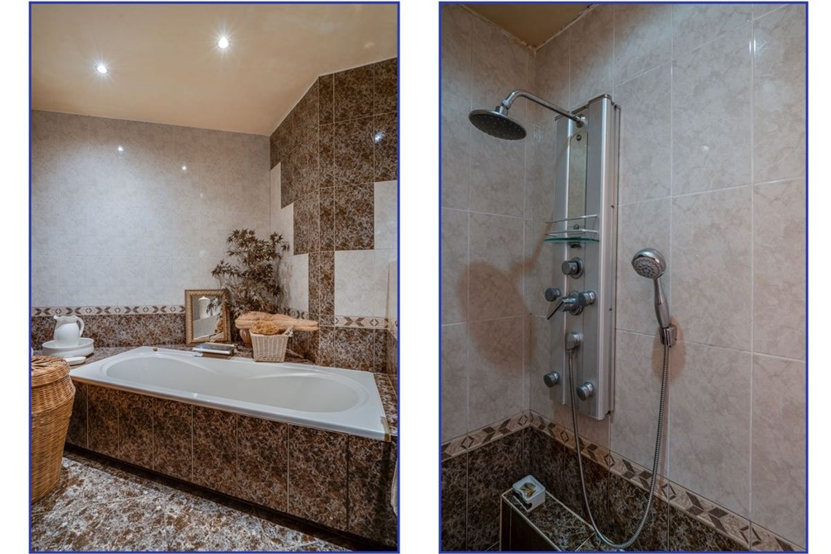 Op deze verdieping bevinden zich daarnaast twee slaapkamers en een luxe badkamer, compleet uitgerust met ligbad, inloopdouche, toilet, bidet en wastafel.