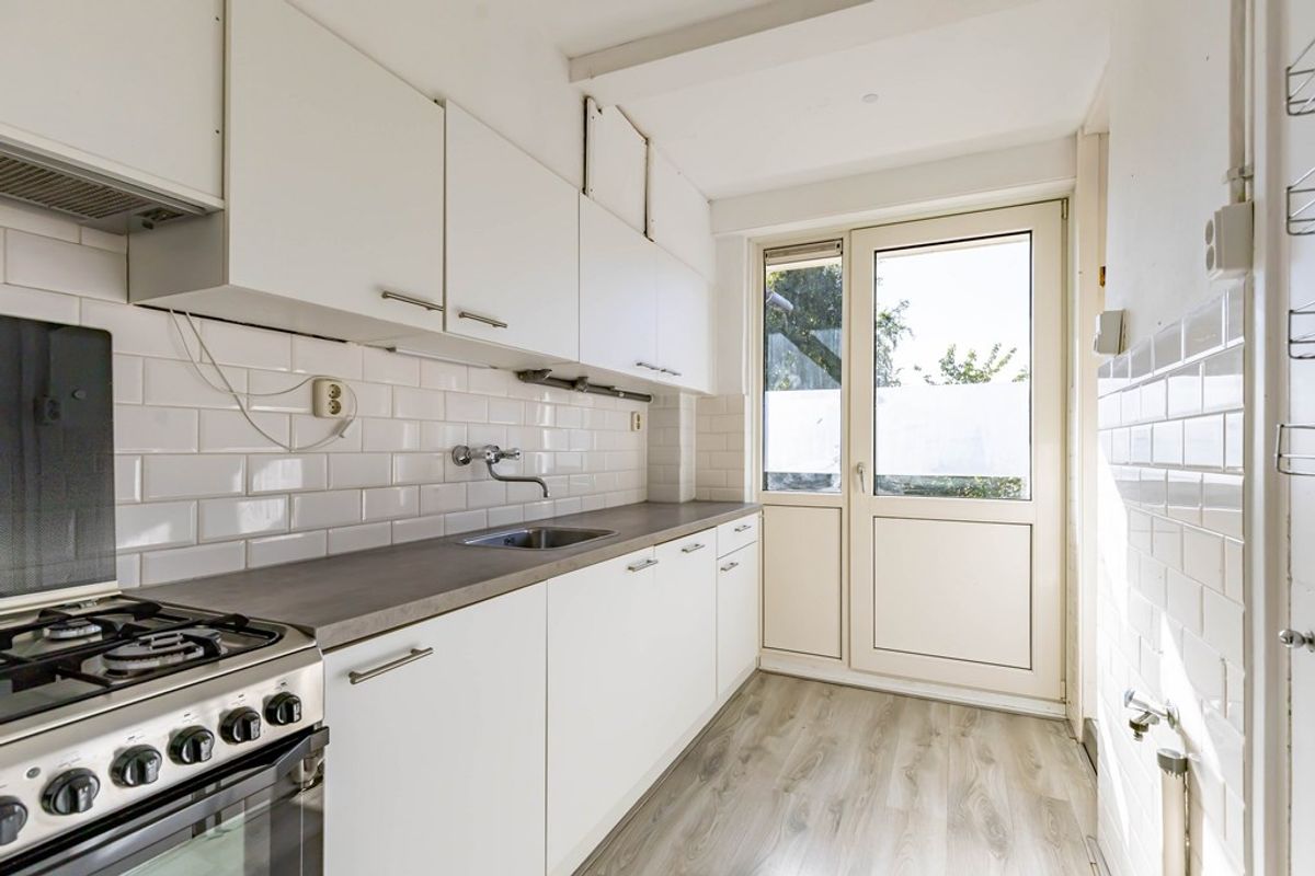 fietsenberging ca. m2 , hal, keuken met koelkast, gasstel met ingebouwde oven, badkamer en groot balkon op het zuiden.