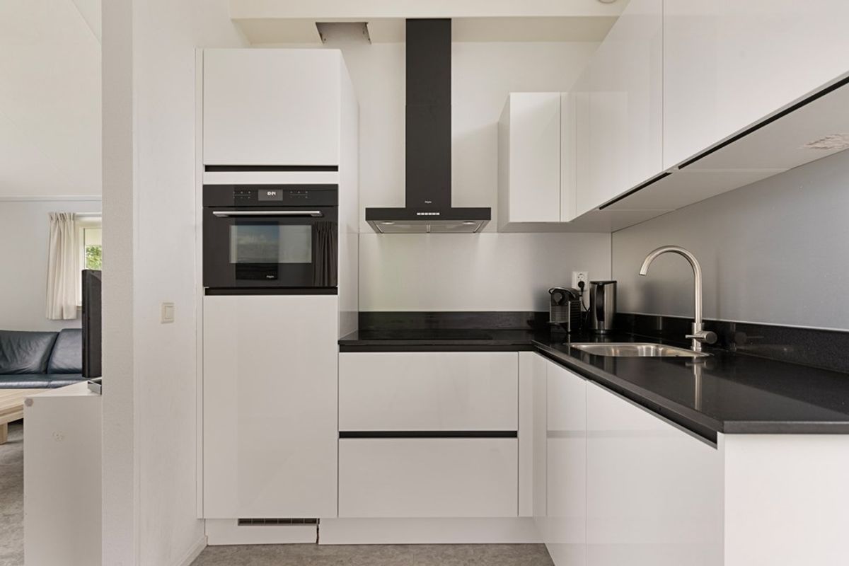 De woonkamer is dankzij de grote raampartijen heerlijk licht en biedt een weids uitzicht over het meer. De open keuken is modern en van alle gemakken voorzien, zoals een koelkast vaatwasser, combi-oven, inductiekookplaat en afzuigkap.
