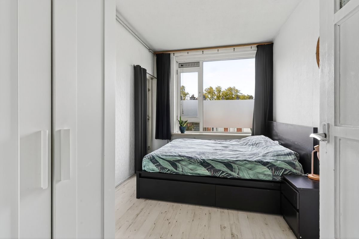 De ruime slaapkamer ligt aan de rustige achterzijde en biedt een fijn uitzicht over de groene omgeving. Tot slot beschikt het appartement over een zeer ruime berging in de onderbouw – ideaal voor fietsen of extra opslag.