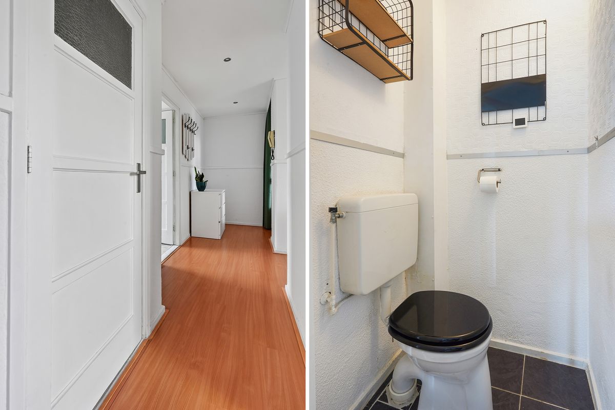 Ruime hal met vaste kast en modern toilet met fontein. Vanuit de hal komt u in de lichte en ruime woonkamer, met toegang tot het balkon aan de voorzijde. De nette keuken in neutrale kleurstelling is voorzien van een vaatwasser, oven, 4-pits gaskookplaat, afzuigkap en opstelplaats voor de cv-combiketel (eigendom). Vanuit de keuken bereikt u het zonnige balkon aan de achterzijde met twee vaste kasten – een heerlijke plek om van de middagzon te genieten.