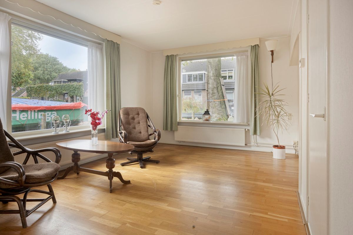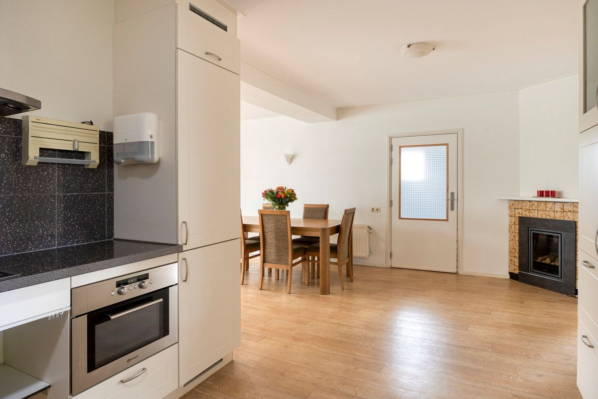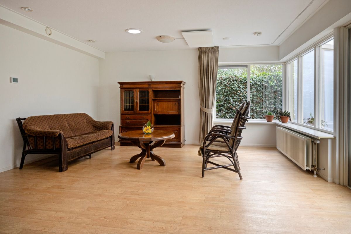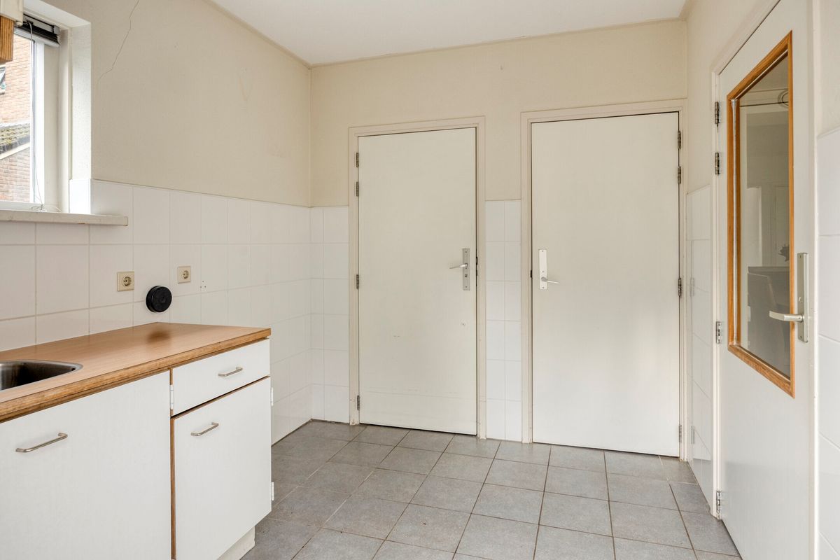 Entree / hal met trapopgang en meterkast. De woonkamer aan de voorzijde beschikt over een uitzicht op de straat en een toegang met schuifdeuren naar een kamer. Aan de achterzijde is de tweede woonkamer gelegen voorzien van veel lichtinval, kelder, openslaande deuren naar de serre en de keukenopstelling met diverse inbouwapparatuur, o.a. een koelkast, vrieskast, vaatwasser, combimagnetron, kookplaat en afzuigkap. Via de bijkeuken bereikt u de achtertuin en het toilet. De badkamer, bereikbaar via de woonkamer, beschikt over een douche, toilet en een wastafel.