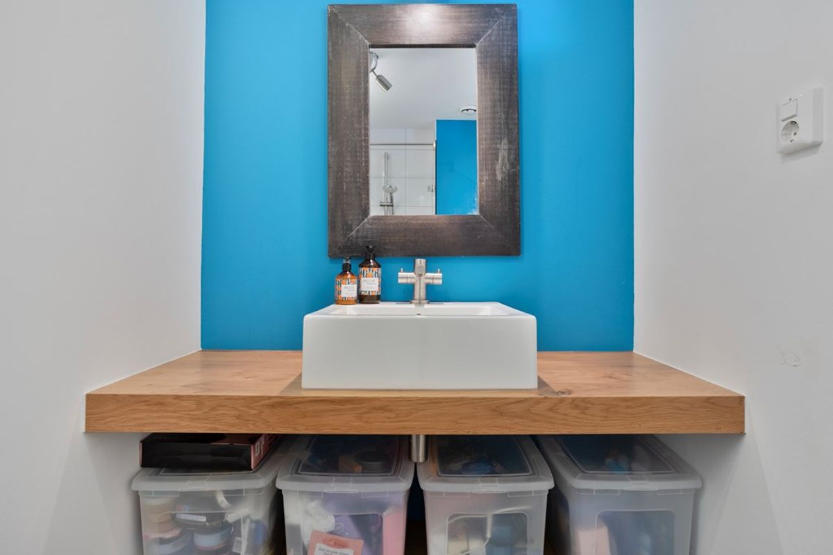 De begane grond is deels voorzien van een fraaie frans eiken vloer en deels een trendy plavuizenvloer. Gestuukte plafonds en wanden maken de living helemaal af. De zonnige tuin beschikt over een grote berging en is via de straat bereikbaar. Je fiets, scooter of motor stallen kan hier dus zonder problemen.
