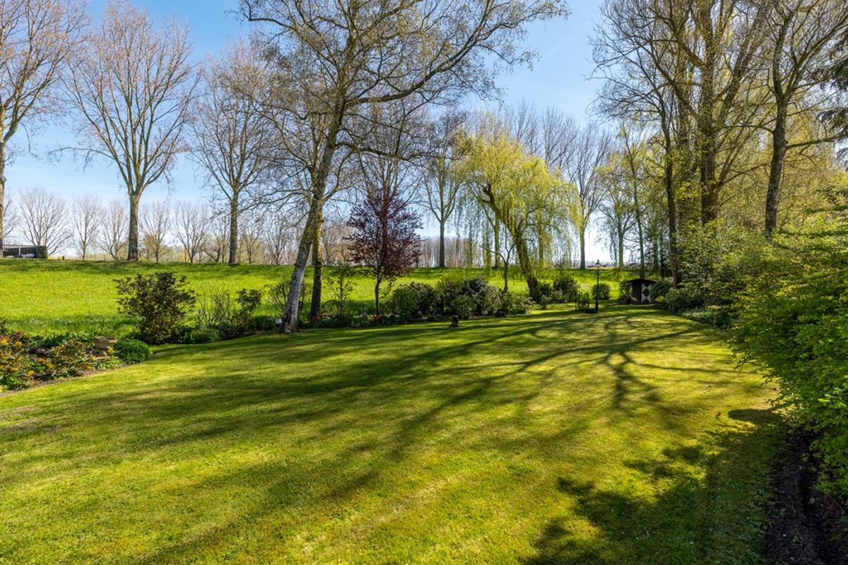 De tuin rondom de woning is met zorg en liefde aangelegd en uitgegroeid tot een parkachtige omgeving. Volwassen bomen, bloeiende borders en een vijver creëren een oase van rust. Een sierlijk bruggetje leidt u over het water richting de dijk en het open landschap daarachter.