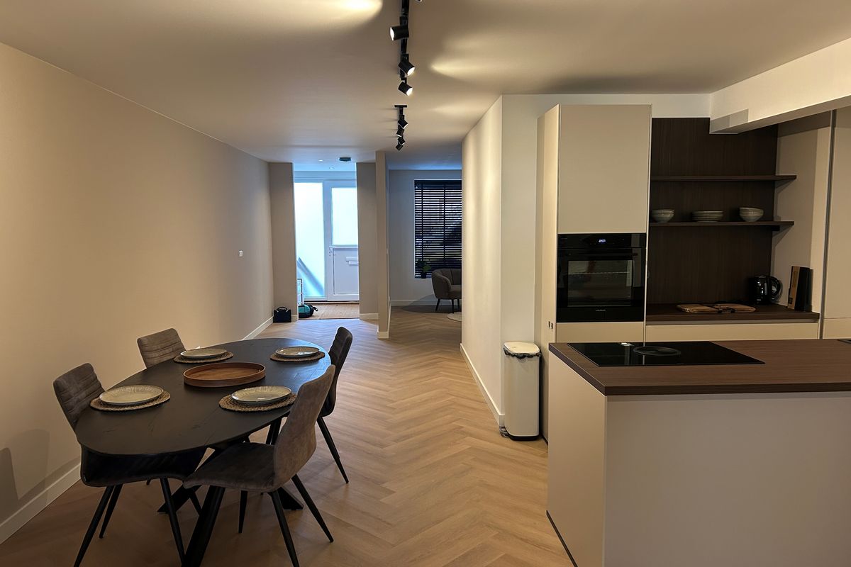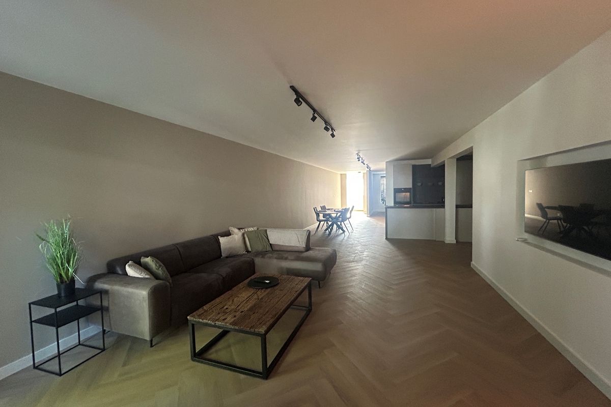 The 4-room apartment is divided as follows: Entrance hall with access to the spacious open-plan living room. A cozy sitting room at the front leads to a laundry room with a washer and dryer. A spacious living room with a herringbone PVC floor and an open-plan kitchen with a luxurious kitchen layout equipped with all modern conveniences and built-in appliances is also available. A separate toilet is also available. A very spacious and luxurious bathroom with a bathtub, walk-in shower, vanity, and a second toilet. Behind the living room is a second long hallway, leading to the courtyard garden. From here, you'll find three very spacious bedrooms, all with beds and wardrobes. Finally, there's a generously sized storage room/central heating unit.