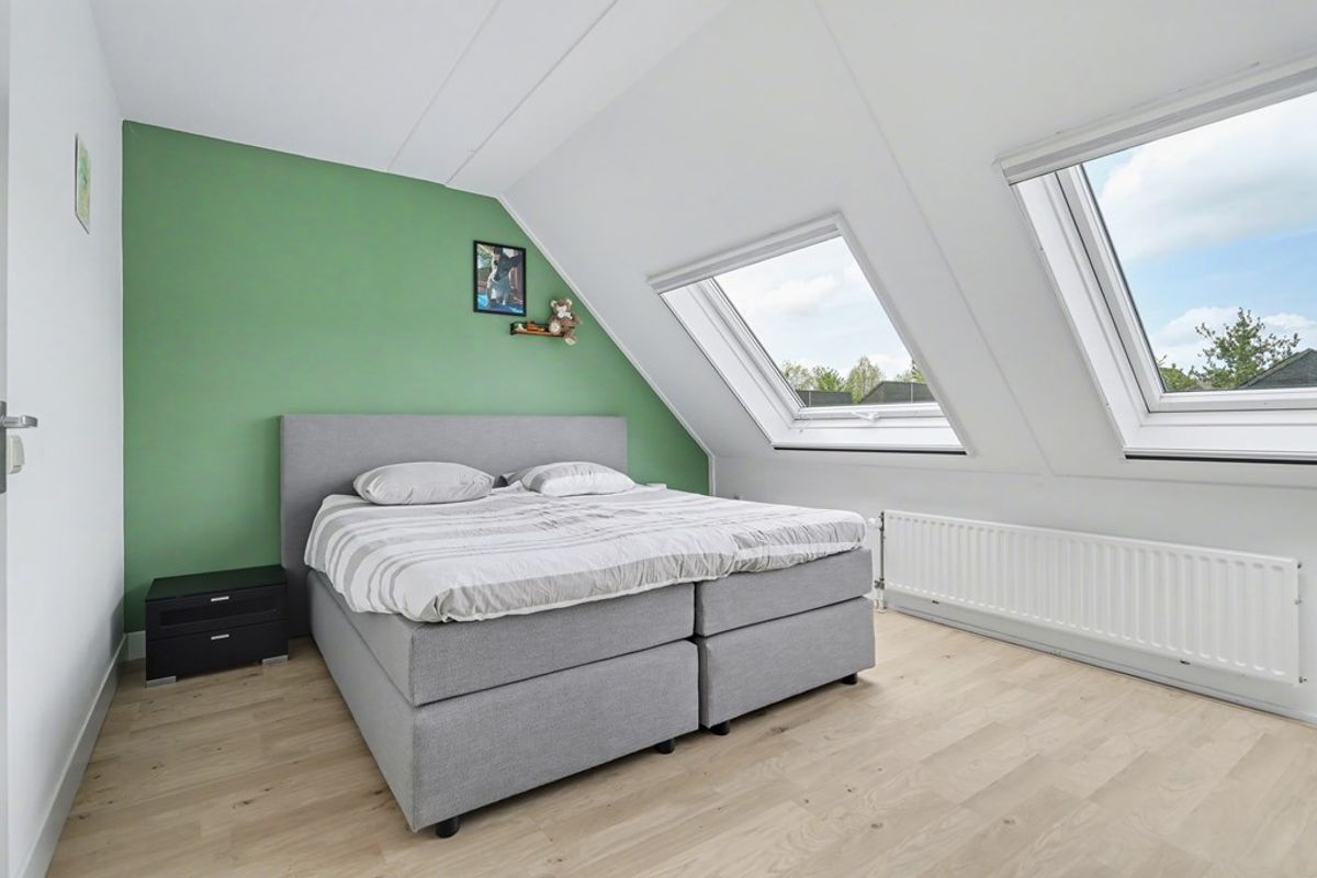 Vanaf de overloop zijn drie slaapkamers en de badkamer bereikbaar. Aan de achterzijde bevindt zich een ruime slaapkamer over de volle breedte van de woning. Aan de voorzijde liggen nog twee slaapkamers, die zich uitstekend lenen als kinder-, werk- of hobbykamer.