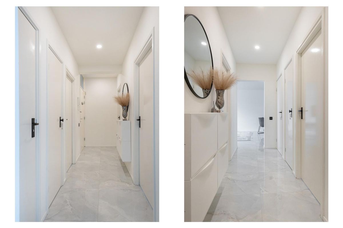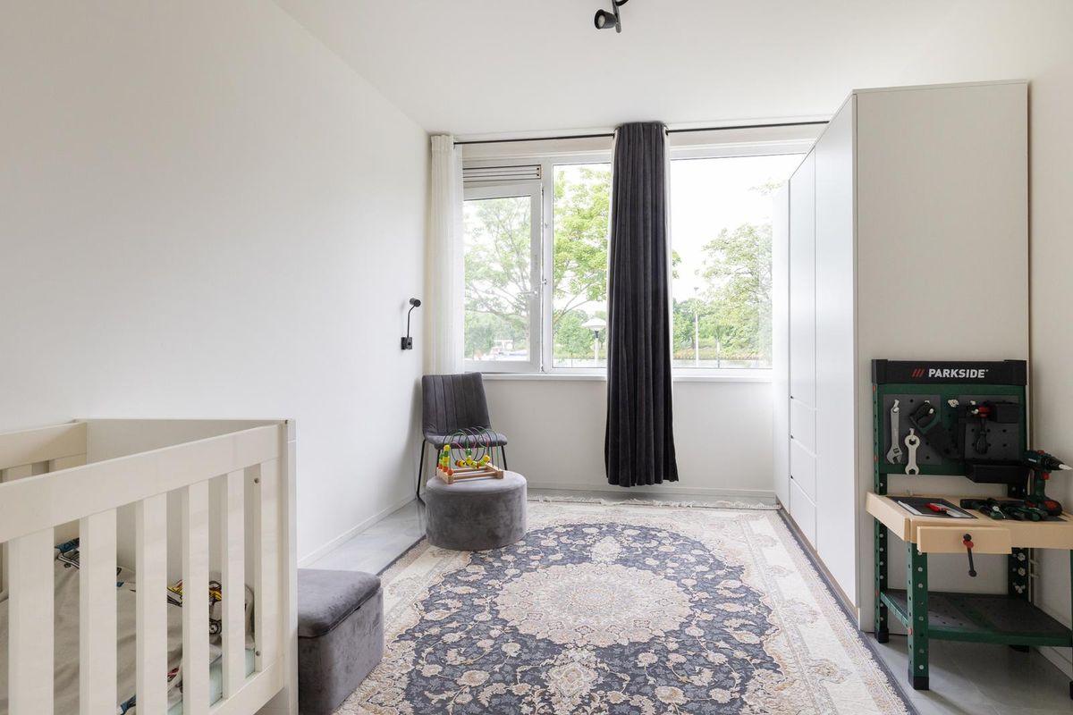 Je komt binnen in een nette hal met toegang tot twee slaapkamers aan de voorzijde. Beide kamers zijn strak afgewerkt en bieden uitzicht op het Amsterdam-Rijnkanaal. Een heerlijke plek om een kinderkamer of werkkamer van te maken.