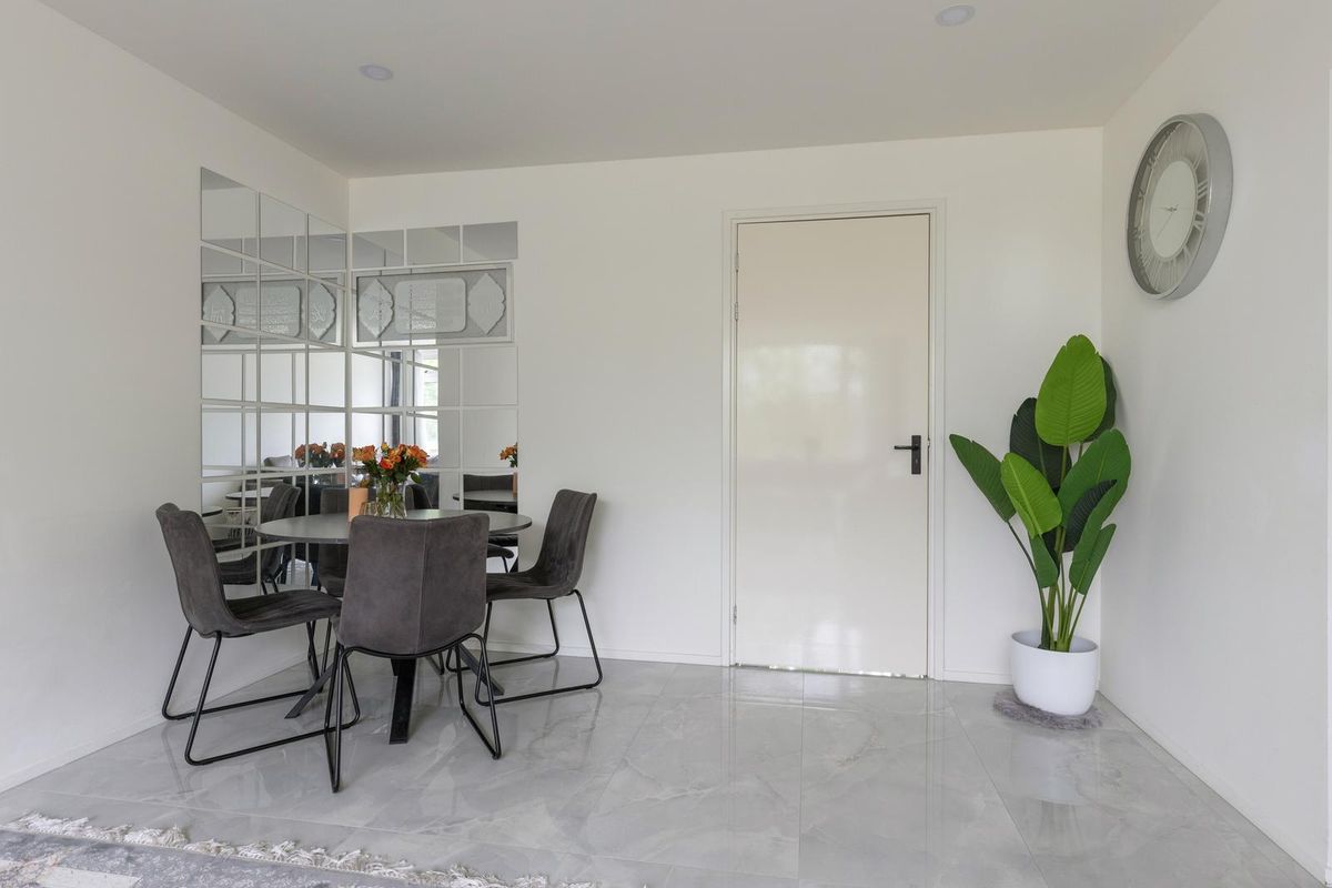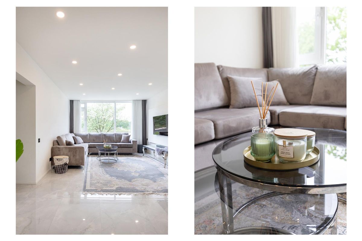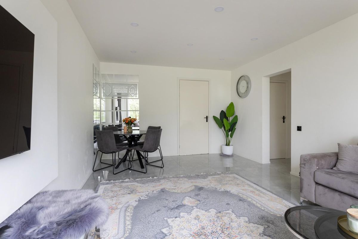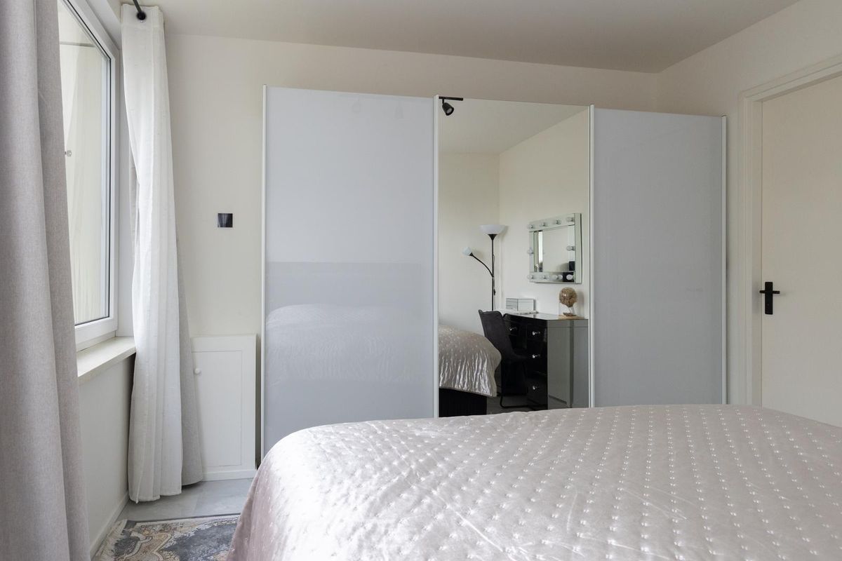 De woonkamer is ruim en licht. Grote ramen zorgen voor een fijne sfeer en je hebt hier genoeg plek voor een comfortabele zithoek én een gezellige eethoek. Vanuit de woonkamer loop je door naar de slaapkamer aan de achterzijde. De badkamer is een echte eyecatcher met moderne verlichting, een stijlvol wastafelmeubel en een ruime inloopdouche met regendouche.