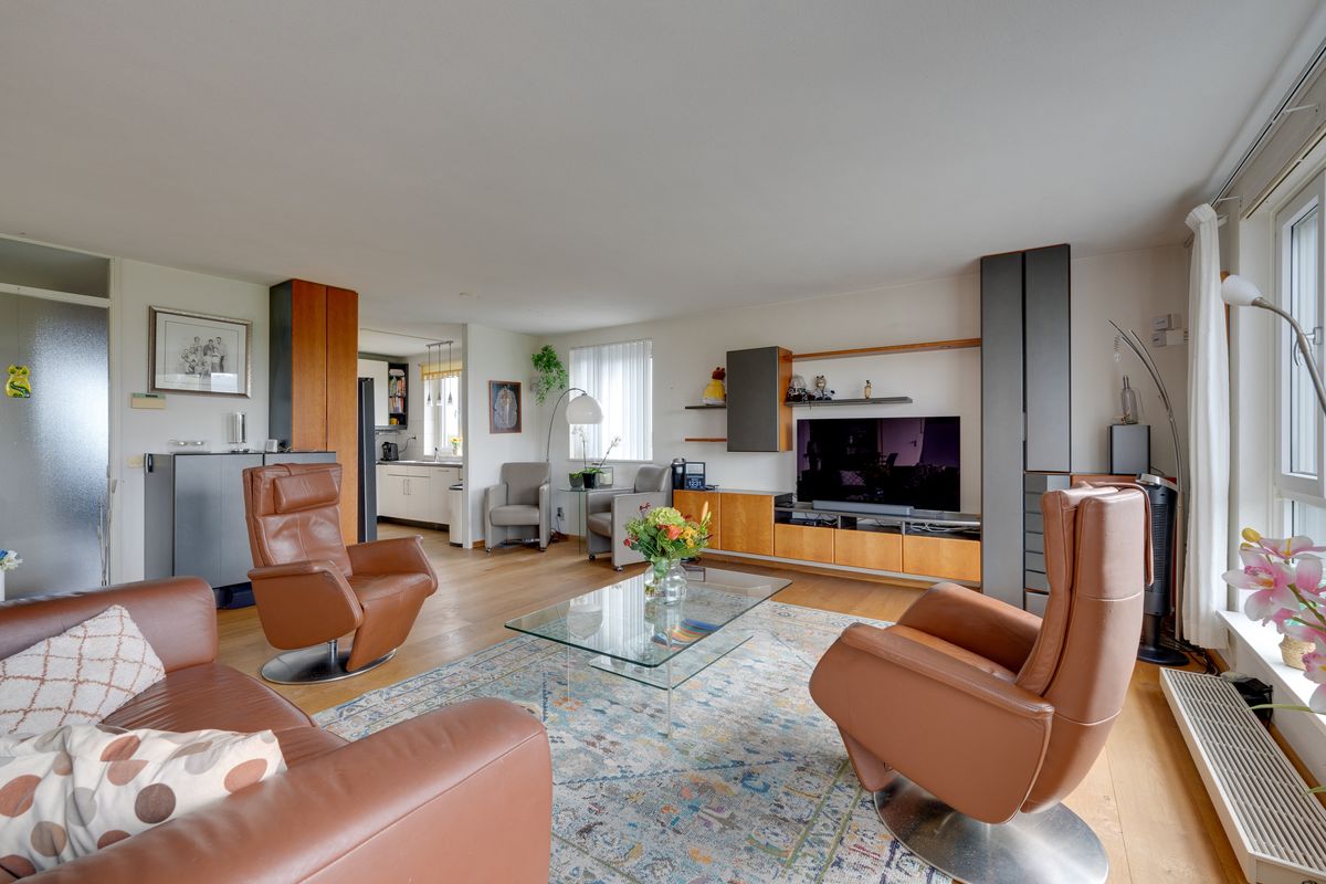 Vanuit de woonkamer en het brede balkon kijk je kilometers ver, tot aan Amsterdam en Monnickendam. Hier woon je letterlijk boven alles, met volop licht en privacy.