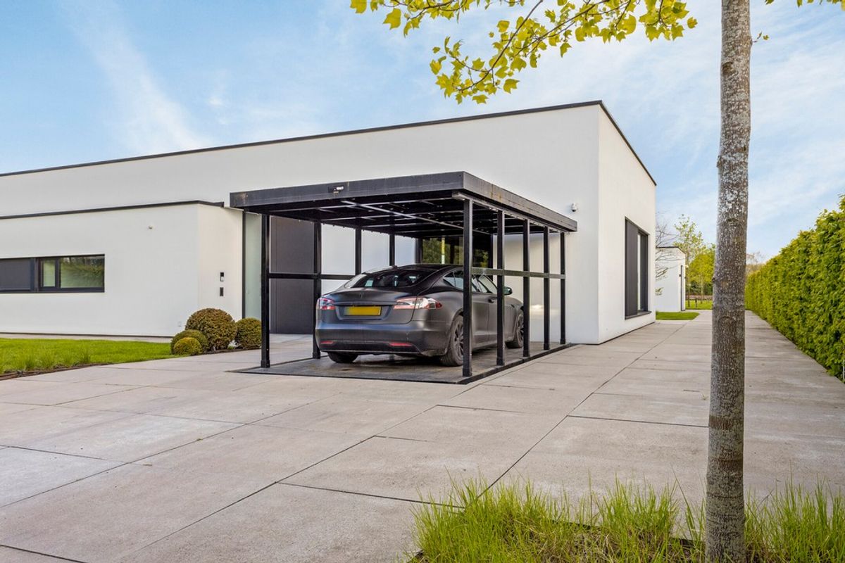 Het is de combinatie van de ligging, complete privacy, de fraaie beplanting, vormgeving van de tuin en de zwemvijver die deze tuin zo bijzonder maakt.. Je vindt er oversized planten, luxe overkappingen met openhaard, twee terrassen en een zitkuil die plaats biedt voor 30 personen. Verlichte bomen zorgen 's avonds voor een betoverende sfeer. Het volledige beregeningssysteem aan zowel de voor- als achterzijde zorgt voor gemakkelijk onderhoud. De oprit aan de voorzijde biedt parkeercapaciteit voor meerdere auto's, met extra parkeermogelijkheden in de kelder dankzij de autolift.)