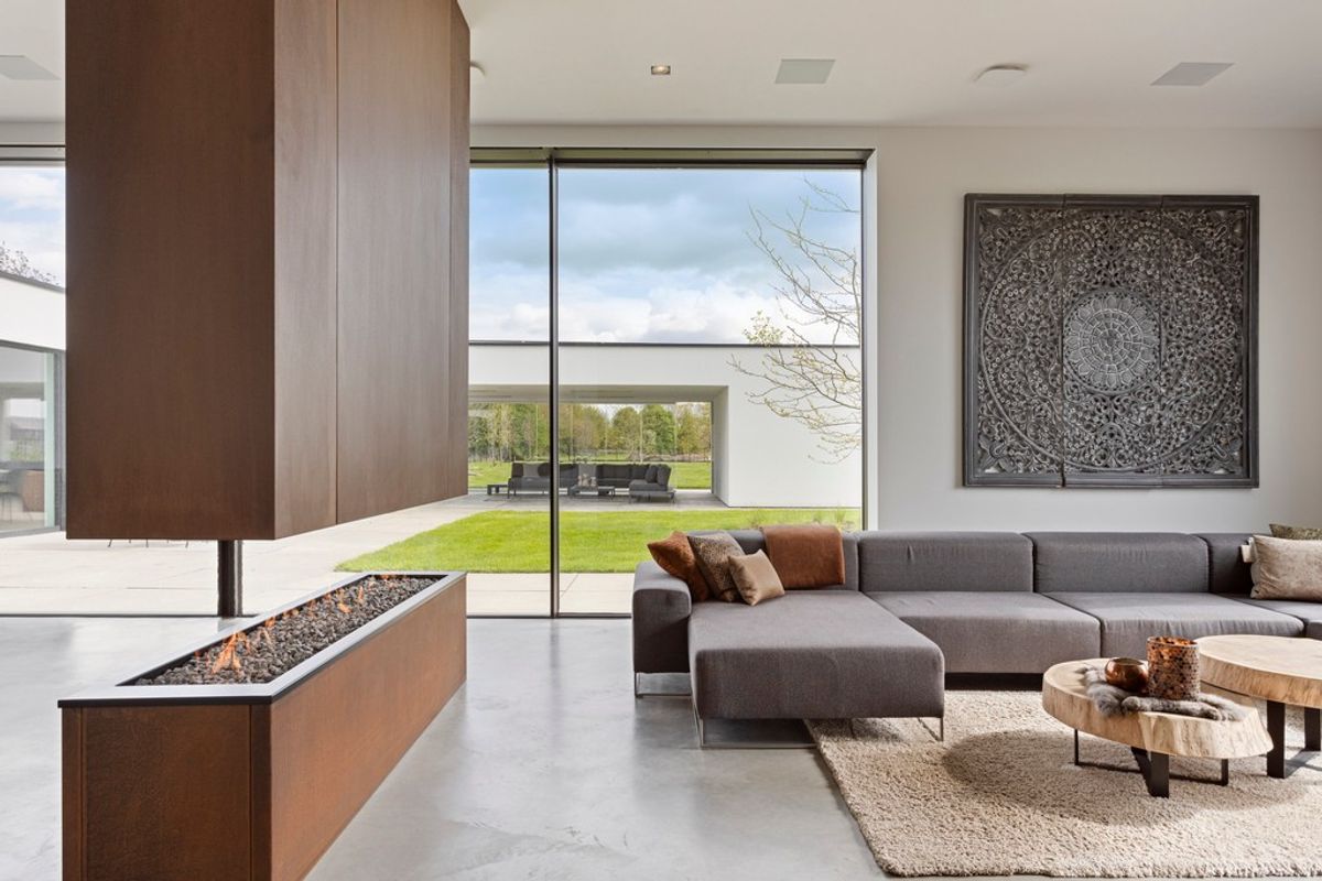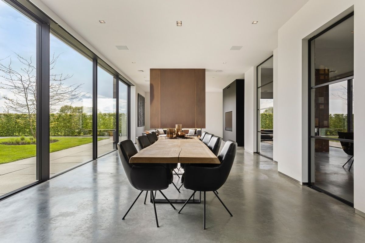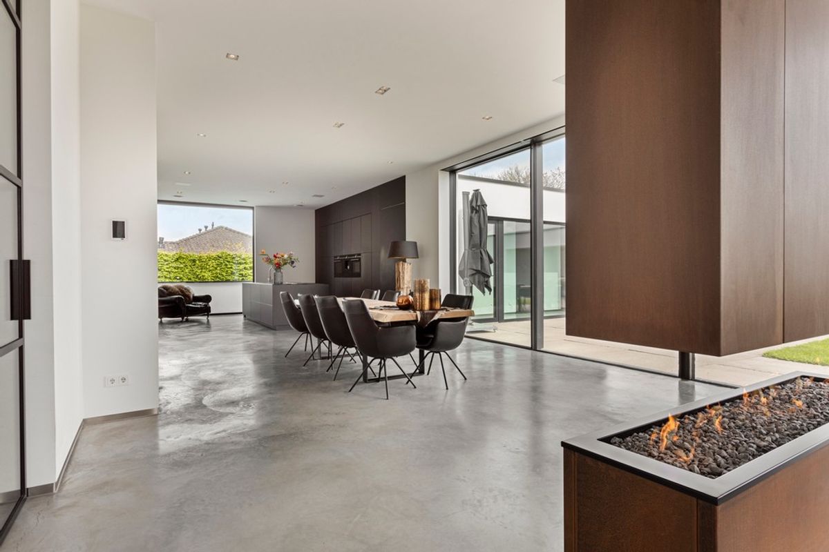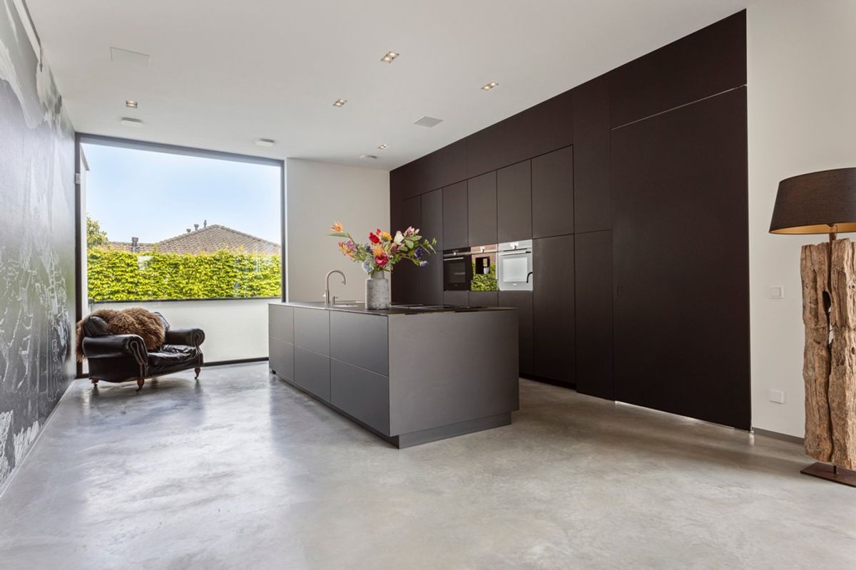 Door middel van een strakke betonnen vloer over de gehele begane grond, hoge raampartijen, houtafwerking en bijzondere stijl accenten ademt het stijlvolle interieur ruimte en licht.