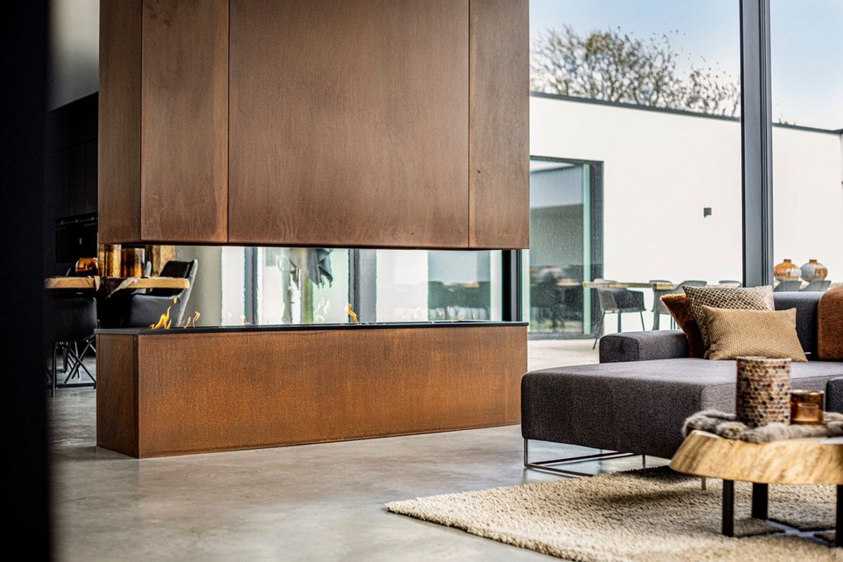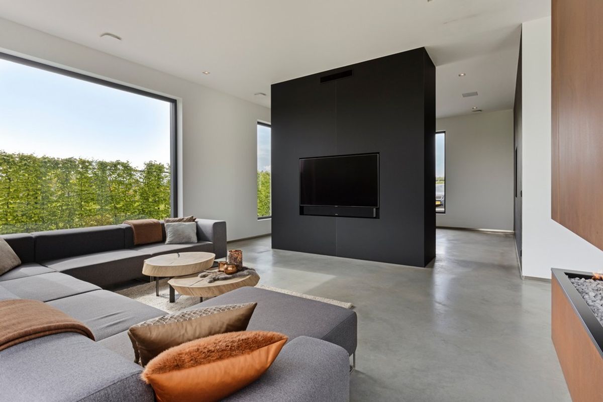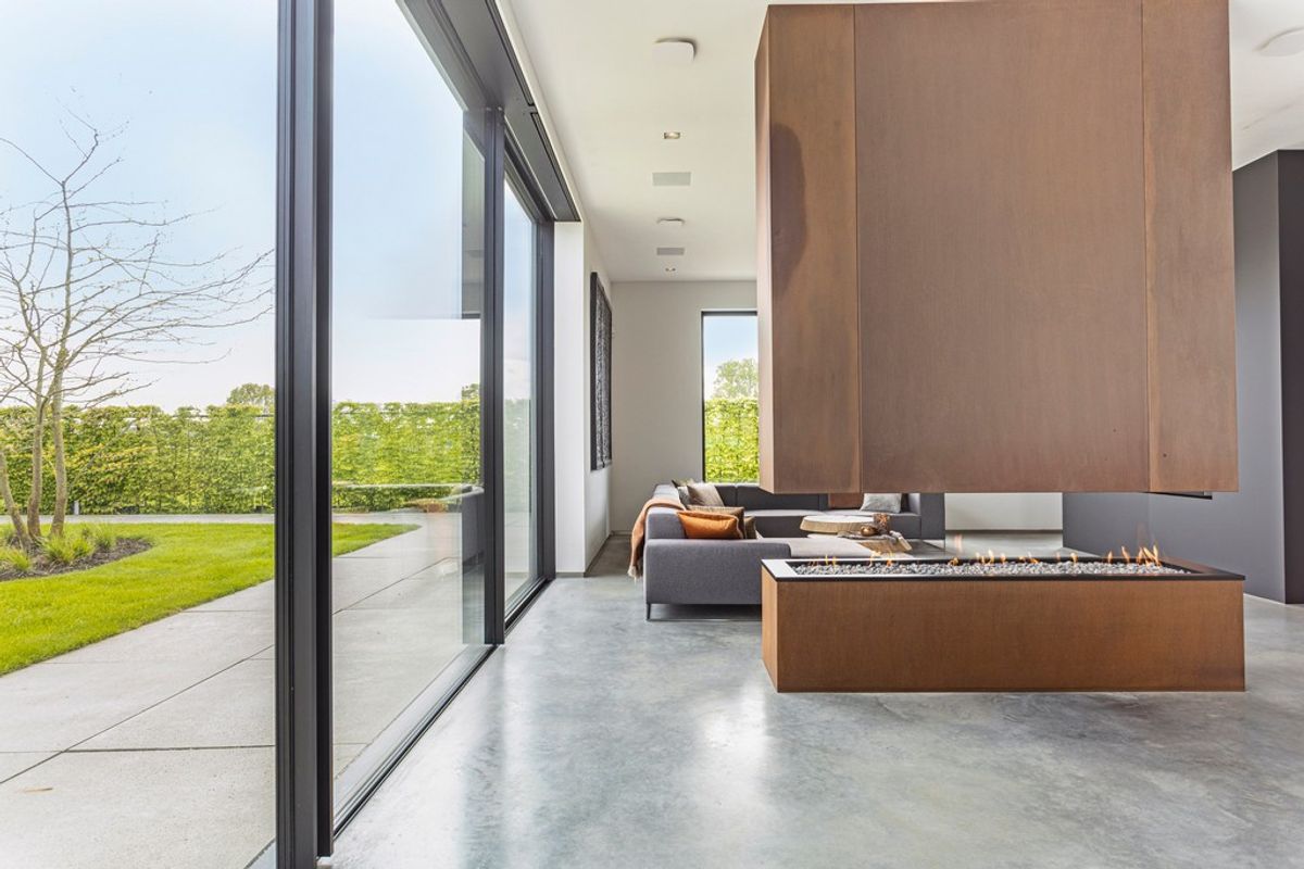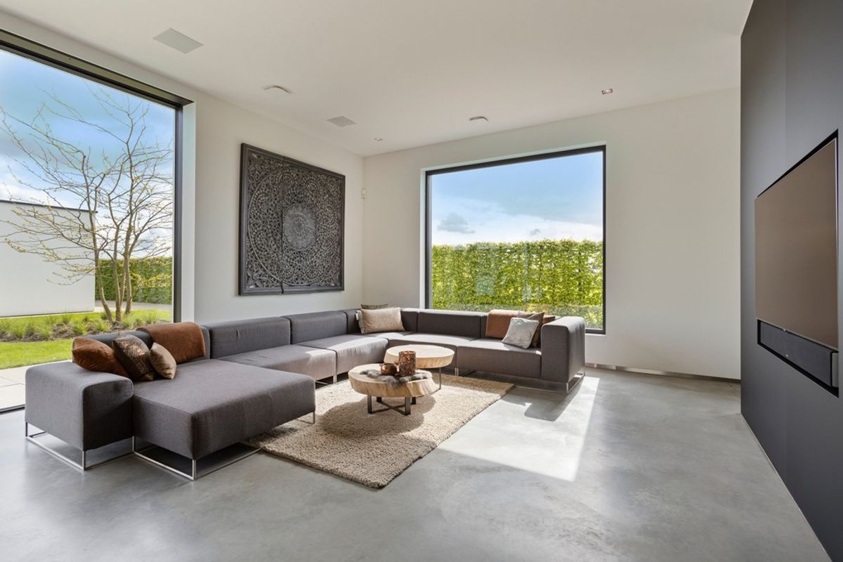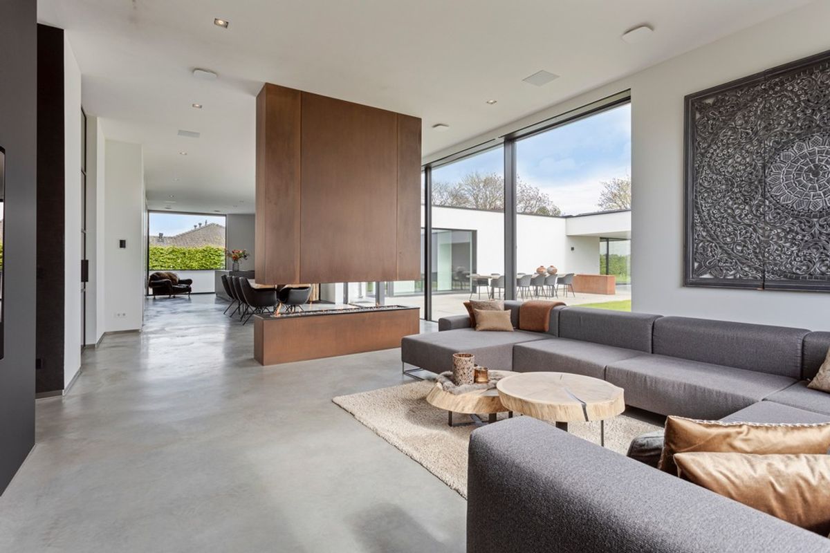 Door middel van een strakke betonnen vloer over de gehele begane grond, hoge raampartijen, houtafwerking en bijzondere stijl accenten ademt het stijlvolle interieur ruimte en licht.