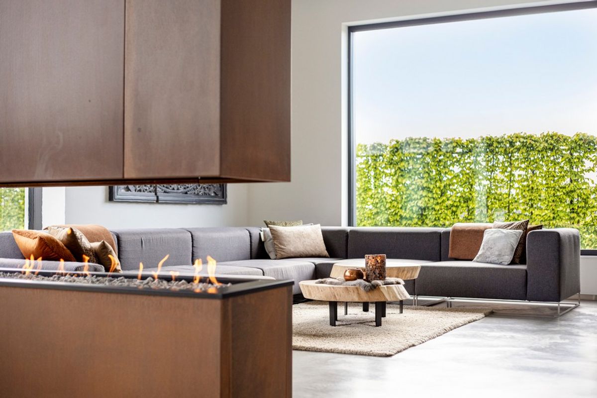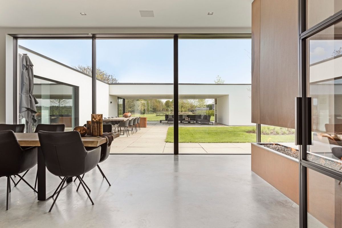 Tijdens de zomerdagen kunt u genieten van de open schuifpui, die ook bedienbaar is via Domotica. Tevens is deze pui ook voorzien van automatische zonweringsschermen.