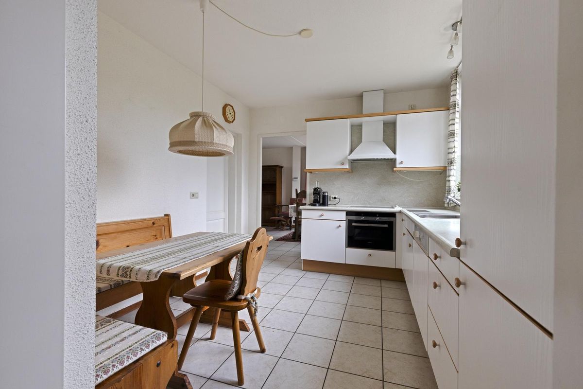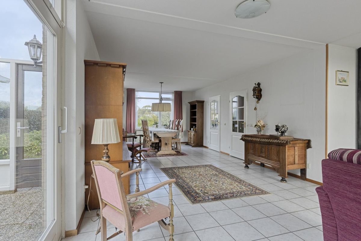 De royale woonkamer aan de voorzijde is heerlijk licht dankzij de grote raampartijen en is voorzien van een plavuizen vloer met vloerverwarming. Via de schuifpui loop je zo de tuin in. De eetkamer sluit aan op de keuken, die is uitgevoerd in L-opstelling en voorzien van diverse inbouwapparatuur zoals een vaatwasser, koel-vriescombinatie, keramische kookplaat, afzuigkap en spoelbak met mengkraan.