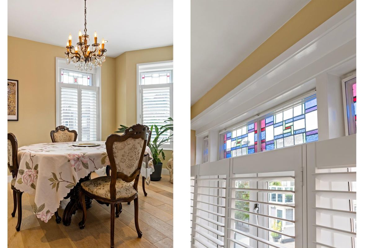 - Ramen in de woonkamer zijn voorzien van op maat gemaakte jaloezieën