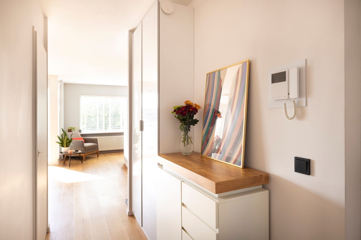 Via de trap komt u de hal binnen waar de brievenbussen, bellentableaus, de trap én de lift zich bevinden.