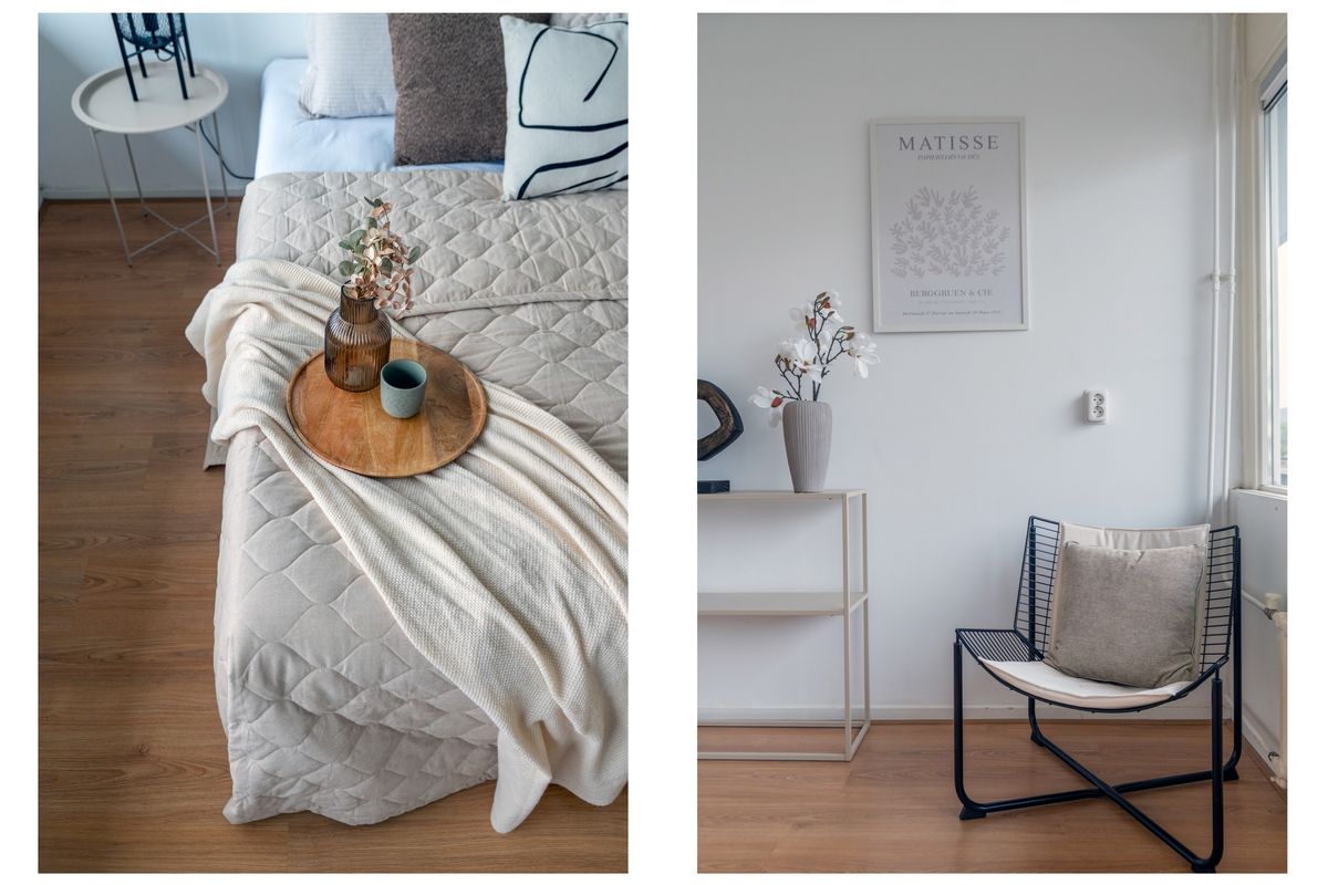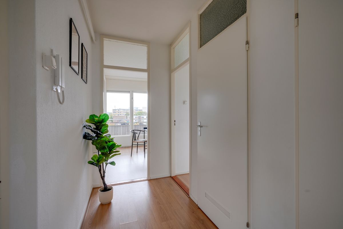 Het appartement beschikt over drie slaapkamers. Aan de achterzijde liggen twee kamers, waarvan één met directe toegang tot het balkon – ideaal als logeer- of werkkamer. De derde, ruim bemeten slaapkamer aan de voorzijde is perfect als master bedroom. De badkamer is netjes afgewerkt en voorzien van een inloopdouche en wastafel. Het separate toilet bevindt zich in de hal.