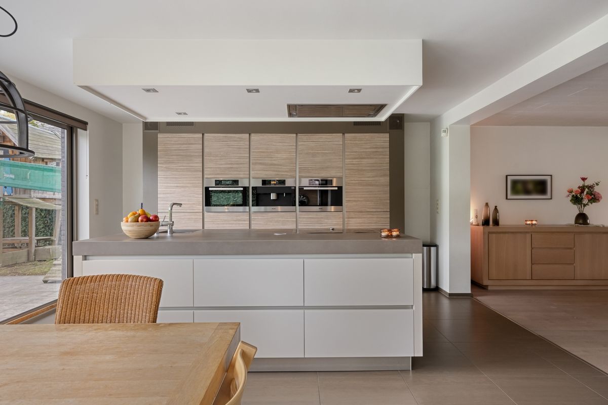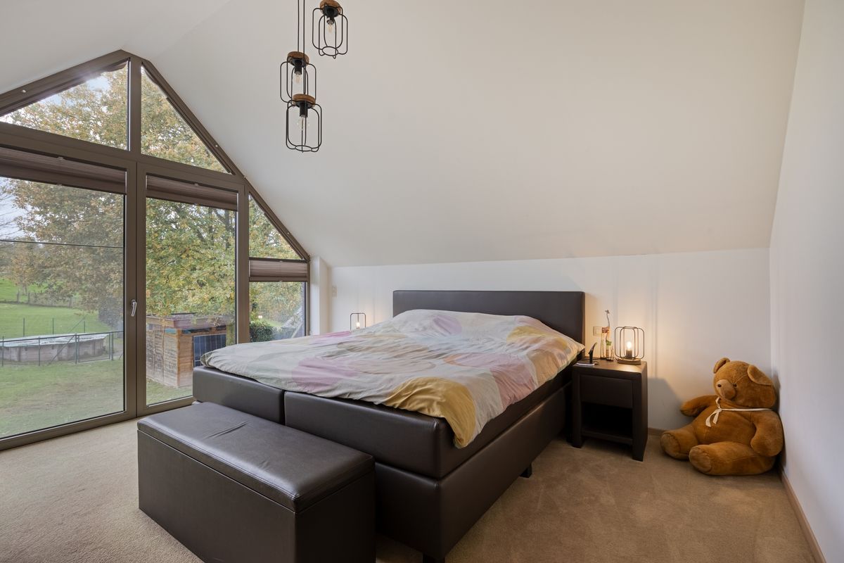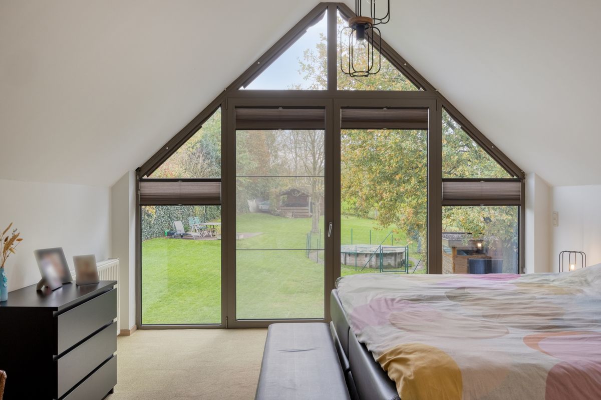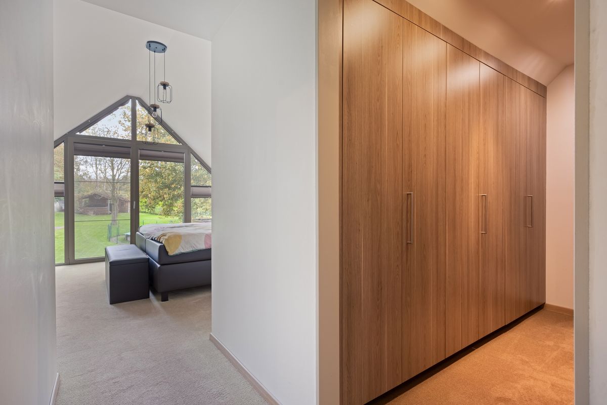 Verdieping: Overloop naar 3 slaapkamers, waarvan de masterbedroom beschikt over een eigen dressroom; badkamer met ligbad, douche en dubbel wastafelmeubel. Separaat toilet.