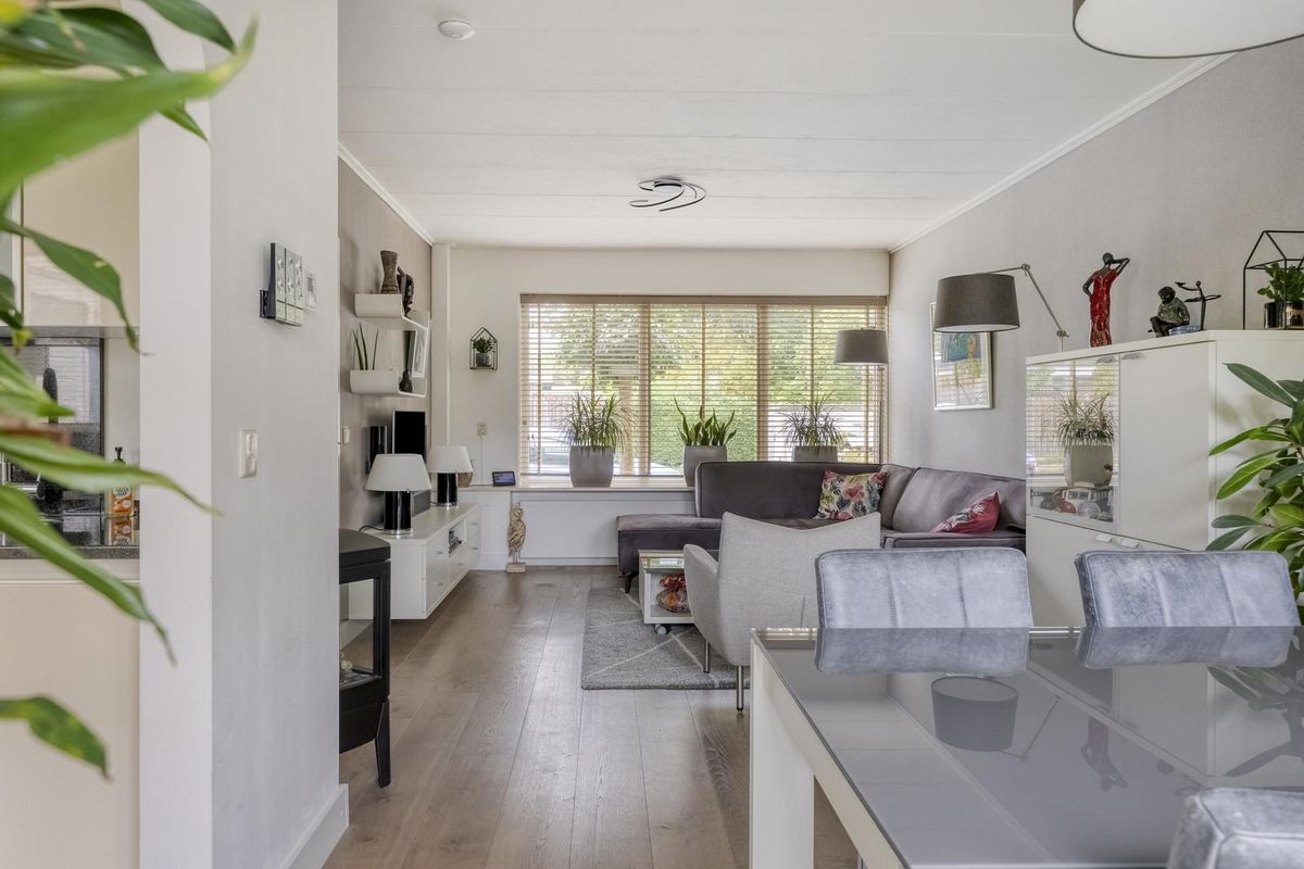 Je komt binnen via de entree met meterkast, trapkast en toilet. Vanuit hier stap je de woonkamer binnen, welke zeer royaal is opgezet. Er is voldoende plek voor een gezellige zithoek en in het verlengde van de woonkamer kun je gemakkelijk een eettafel voor 8 personen kwijt. Dankzij de twee openslaande tuindeuren geniet je van veel lichtinval en een fijne verbinding met de achtertuin.