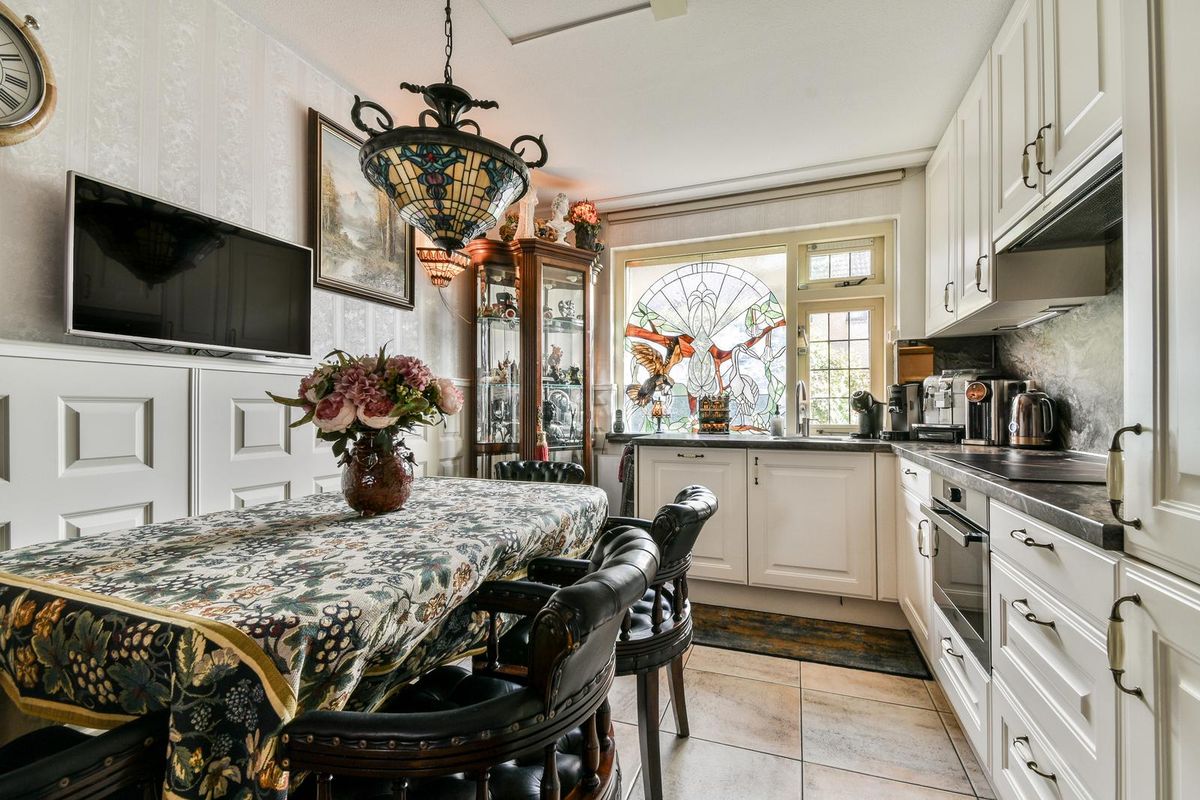 Voortuin met parkeergelegenheid op eigen terrein en toegang tot zowel de woning als de garage. Overdekte entree, hal met meterkast (2019), toilet met duoblok en fonteintje, trapopgang en toegang tot de woonkamer. De woonkamer is uitgebouwd, waardoor er veel extra ruimte is ontstaan. De woonkamer beschikt over een trapkast. Aan de voorzijde ligt de open keuken welke is voorzien van een koel-vriescombinatie, een vaatwasser, een combi-oven, een inductiekookplaat en een afzuigkap. Door de boven- en onderkasten is er veel bergruimte. De woonkamer is voorzien van airconditioning (2024), de achterzijde zijn voorzien van rolluiken en op de gehele begane grond ligt een tegelvloer.
