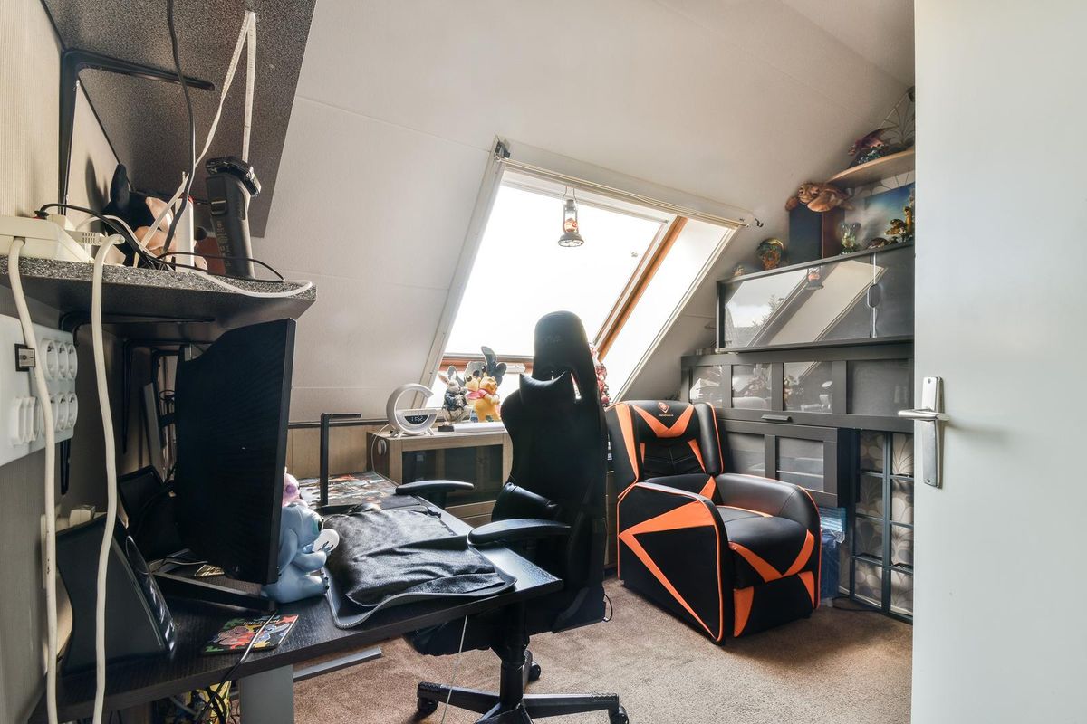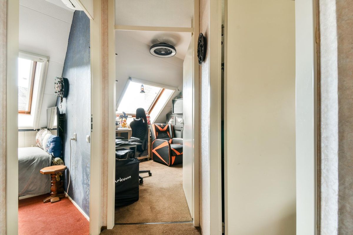 Overloop met dakraam, wasmachine-aansluiting, cv-ketel en de omvormer van de zonnepanelen. Vanuit de overloop is er toegang tot de vierde slaapkamer. Deze slaapkamer is voorzien van een dakraam aan de voorzijde.