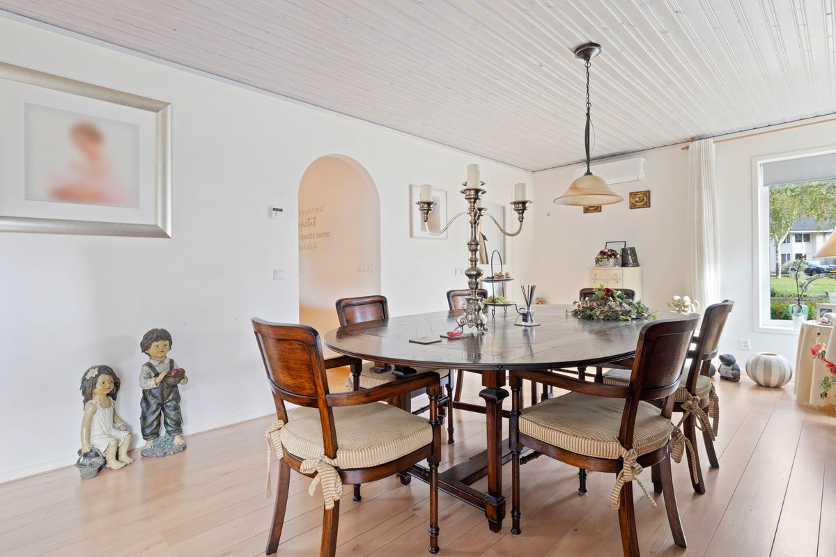De woonkamer van ca. 40 m², vier slaapkamers, inpandige garage en de verzorgde tuin maken dit een ideale gezinswoning op een gewilde locatie. Alles wat u nodig heeft — winkels, scholen, het NS-station en de bossen — ligt op loopafstand.