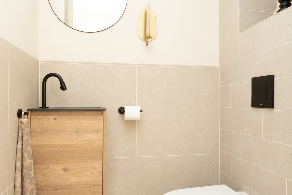 Hal met meterkast en waterontharder; luxe toiletruimte met hangend closet en fonteintje;
