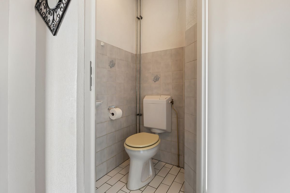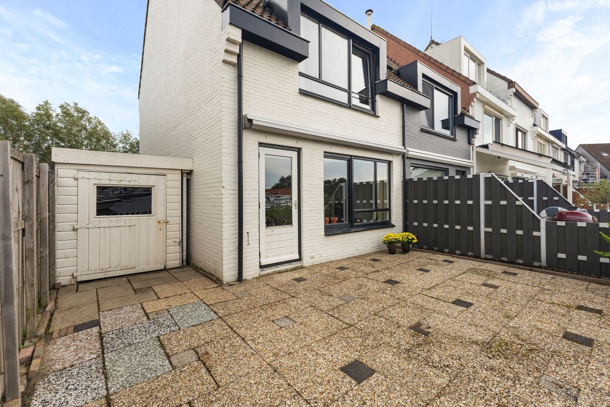 Dankzij de gunstige hoekligging beschikt de woning over extra perceel, en dus een bredere tuin. Naast de woning zit een grote berging.