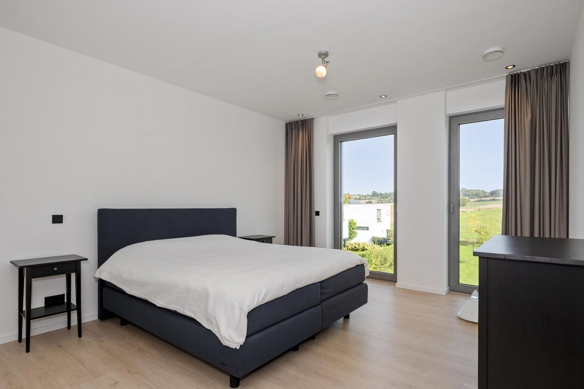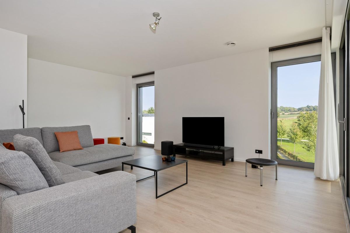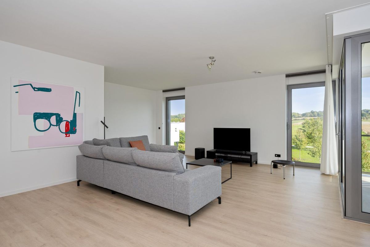 - Zowel vanuit de woonkamer als vanaf het balkon is er prachtig uitzicht over de glooiende akkers en fruitvelden die doorlopen tot aan het Savelsbos;