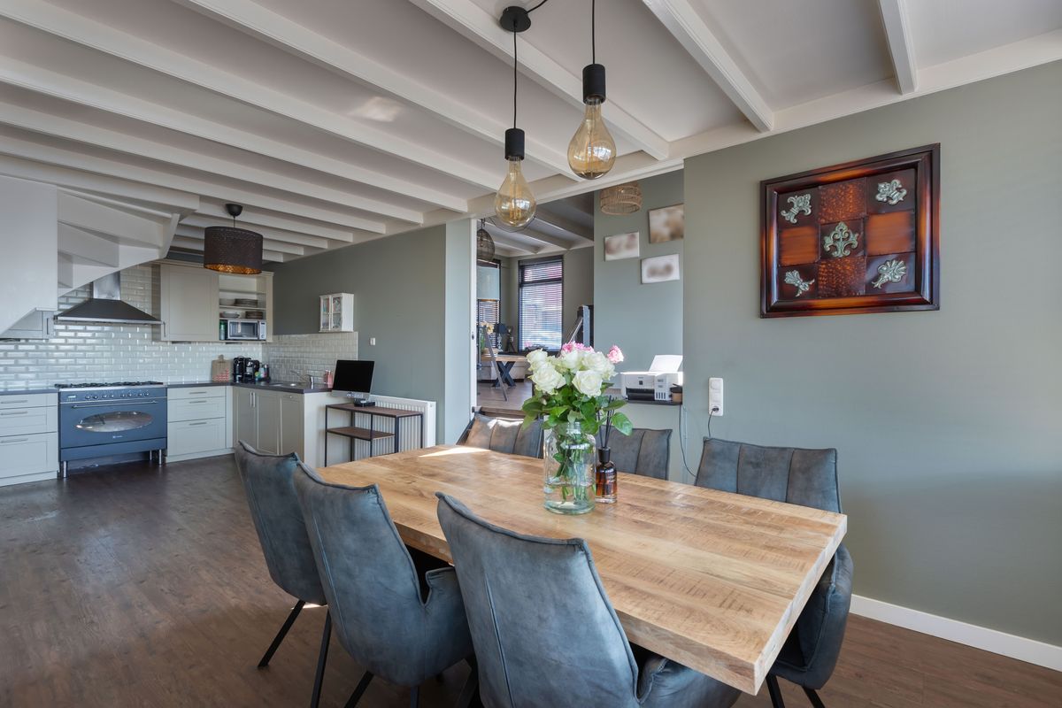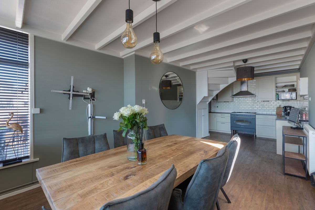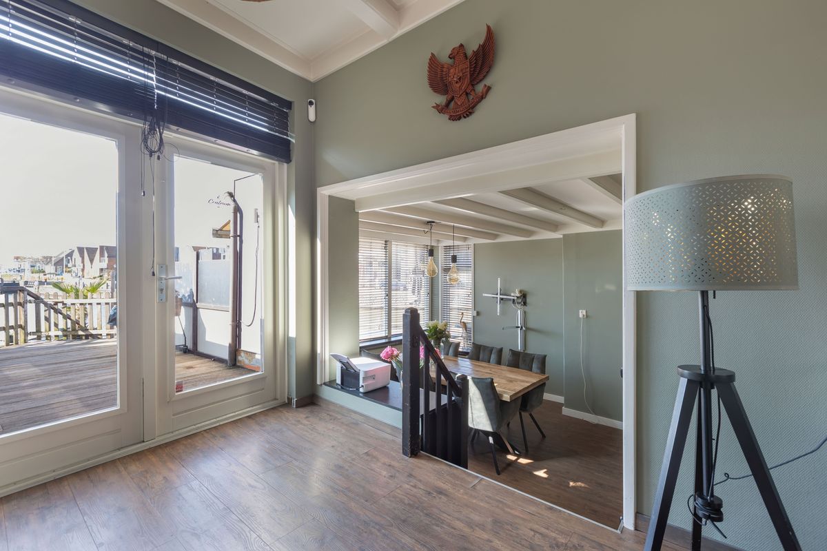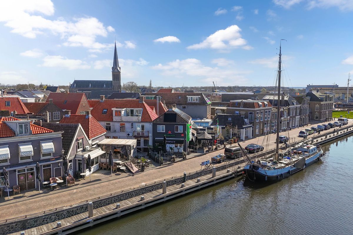 Wat vroeger 2 woonhuizen waren is samengevoegd tot een geheel waarbij het karakter van de woningen behouden is gebleven. Binnen tref je een sfeervolle woonkamer met een authentiek balkenplafond die direct warmte en gezelligheid uitstraalt. De ruime leefkeuken nodigt uit tot lange avonden tafelen met zicht op het water en de bedrijvigheid rondom de haven. Boven zijn er twee royale slaapkamers, elk met een eigen trapopgang, wat de woning niet alleen bijzonder maakt, maar ook uitermate geschikt als kleinschalige bed and breakfast of gastenverblijf.