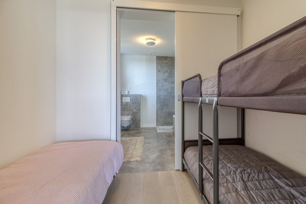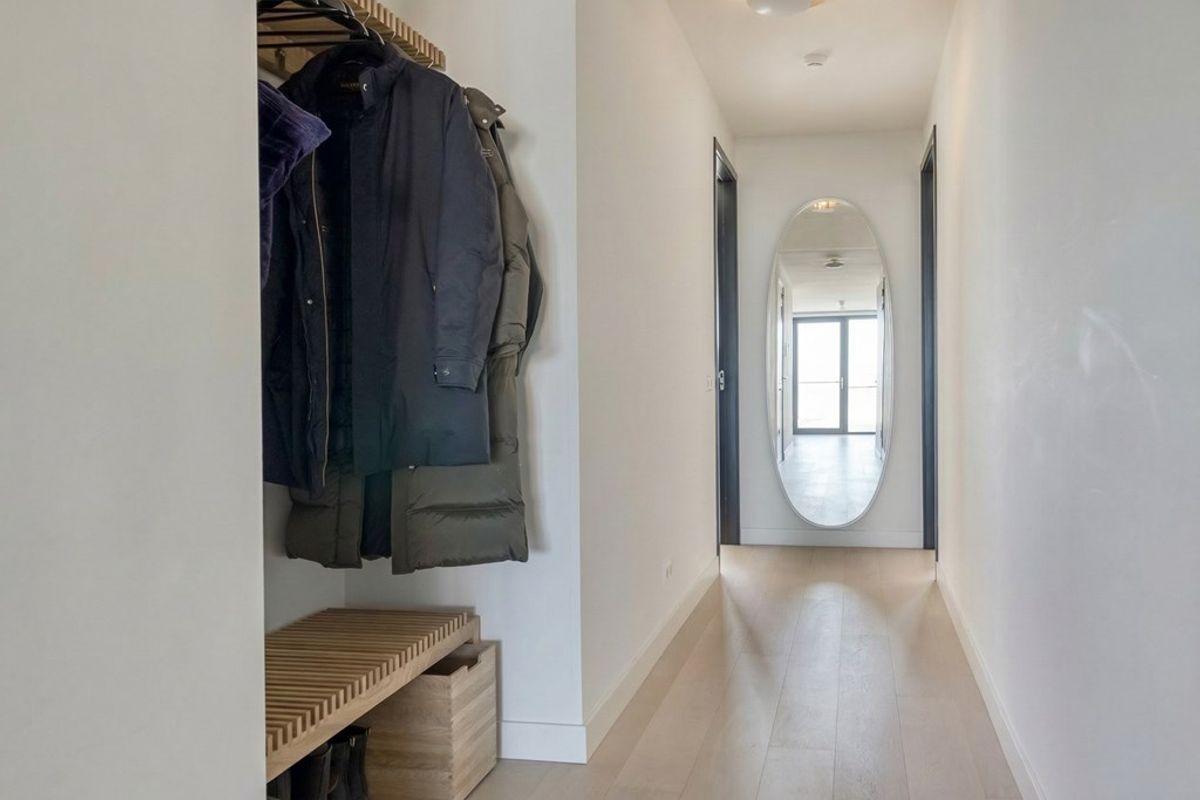 Het ruime balkon op het westen vormt een aangename plek om in de middag en avond te genieten van de zon en het uitzicht, dat gedurende de dag steeds van karakter verandert. Aan de achterzijde bevindt zich een tweede balkon op het oosten, ideaal voor een rustig begin van de dag.
