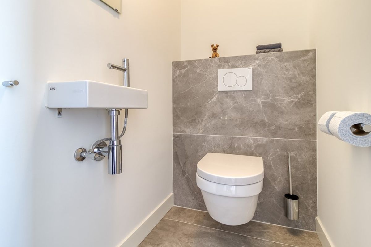 Daarnaast is er een separate toiletruimte en een inpandige berging met ruimte voor de warmtepomp, wasmachine en droger.