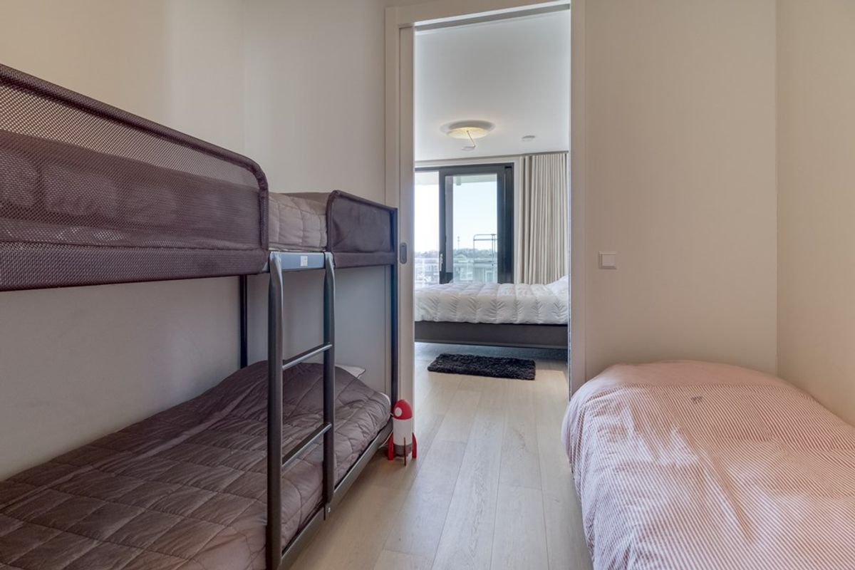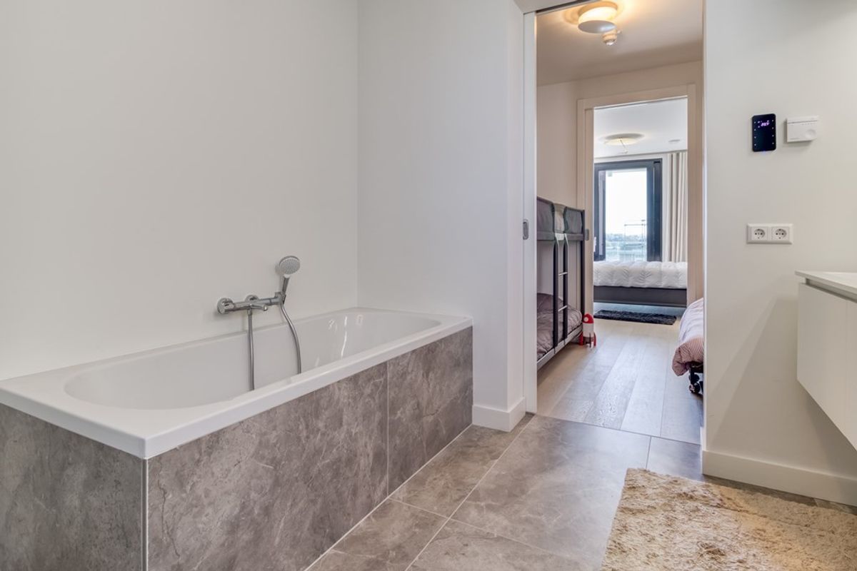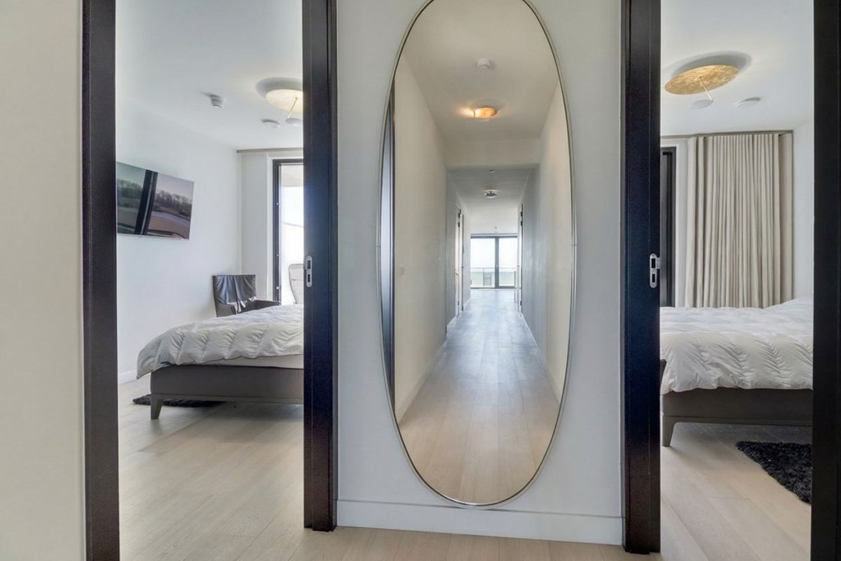 De master bedroom beschikt over een directe verbinding met het balkon aan de oostzijde en staat in open verbinding met een praktische dressingruimte. Aansluitend bevindt zich de en-suite badkamer, voorzien van ligbad, inloopdouche, dubbele wastafel en toilet. De dressing kan desgewenst worden ingericht als extra (slaap)kamer en is middels schuifdeuren afsluitbaar.