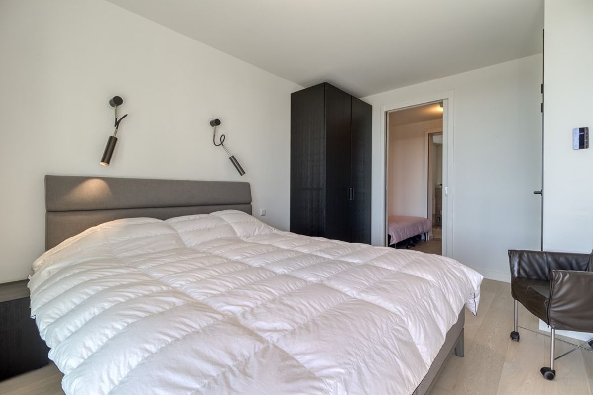 De tweede slaapkamer heeft eveneens toegang tot het balkon en beschikt over een eigen en-suite badkamer met inloopdouche en dubbele wastafel.