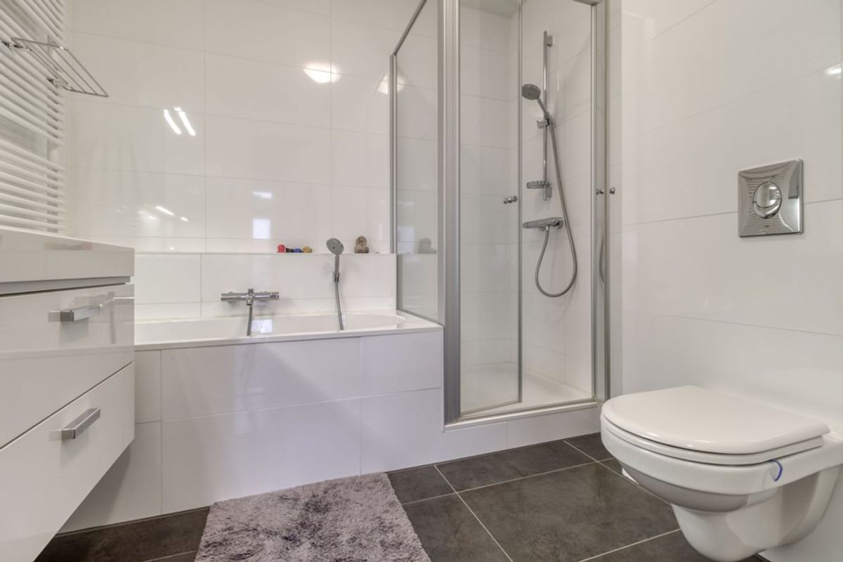 Origineel waren er 2 slaapkamers maar één van de twee slaapkamers is bij de woonkamer getrokken waardoor de woonkamer vergroot is en er zo een extra ruimte is voor bijvoorbeeld een werkplek. Deze ruimte is multifunctioneel en door het aanwezige opklapbed en kamerscherm kan de ruimte ook prima als 2e slaapplaats gebruikt worden. Mocht de wens er zijn dan is het eenvoudig om er weer een tweede slaapkamer van te maken door het plaatsen van een wand. De badkamer is voorzien van ligbad, douche, wastafel en 2e toilet. In de ruime berging met cv-opstelling bevindt zich de wasmachine en droger en is er meer dan voldoende ruimte voor het opbergen van huishoudelijke spullen.