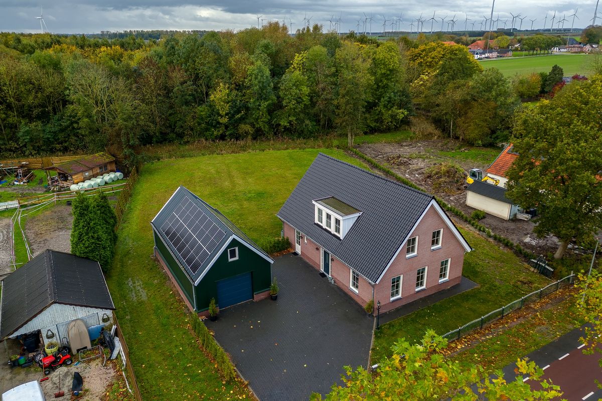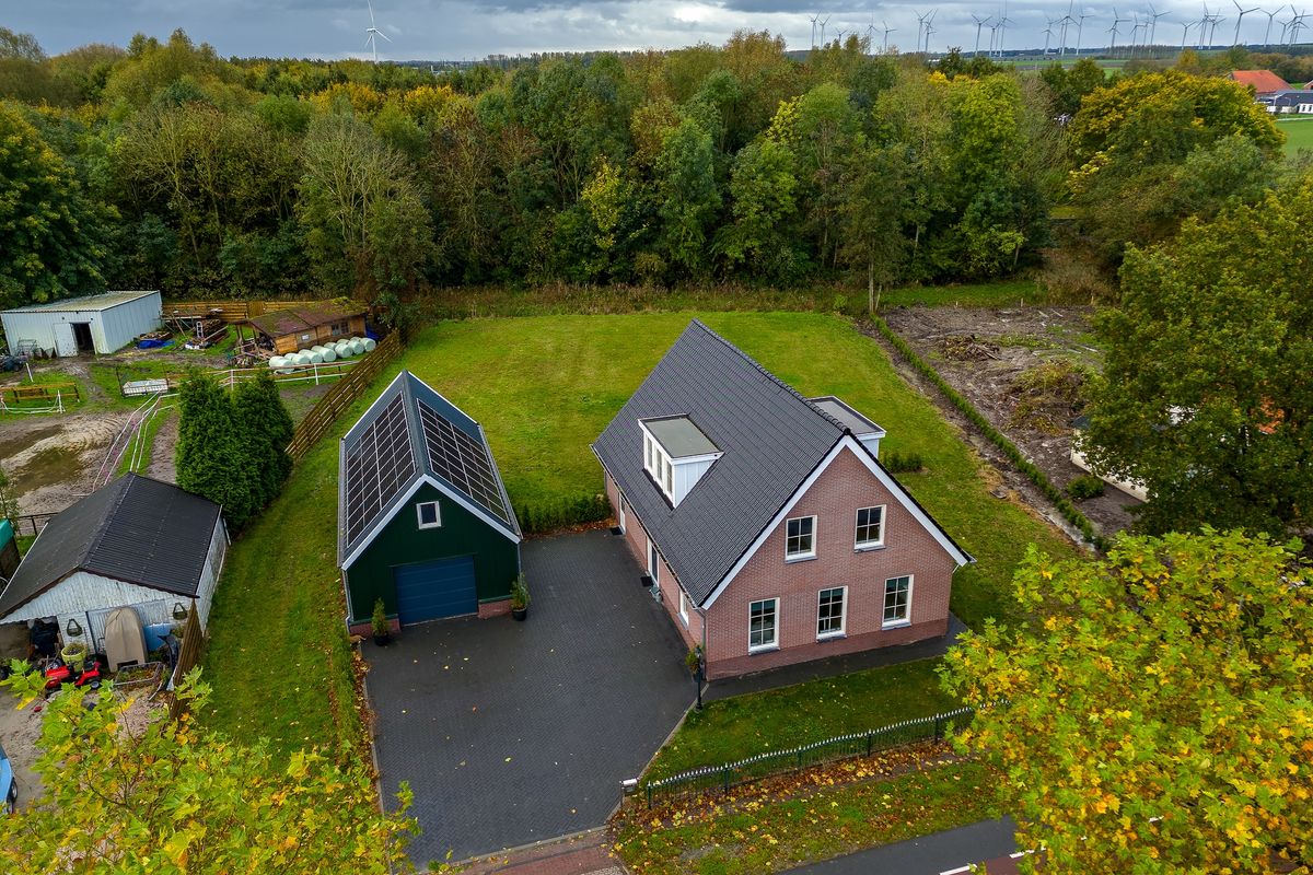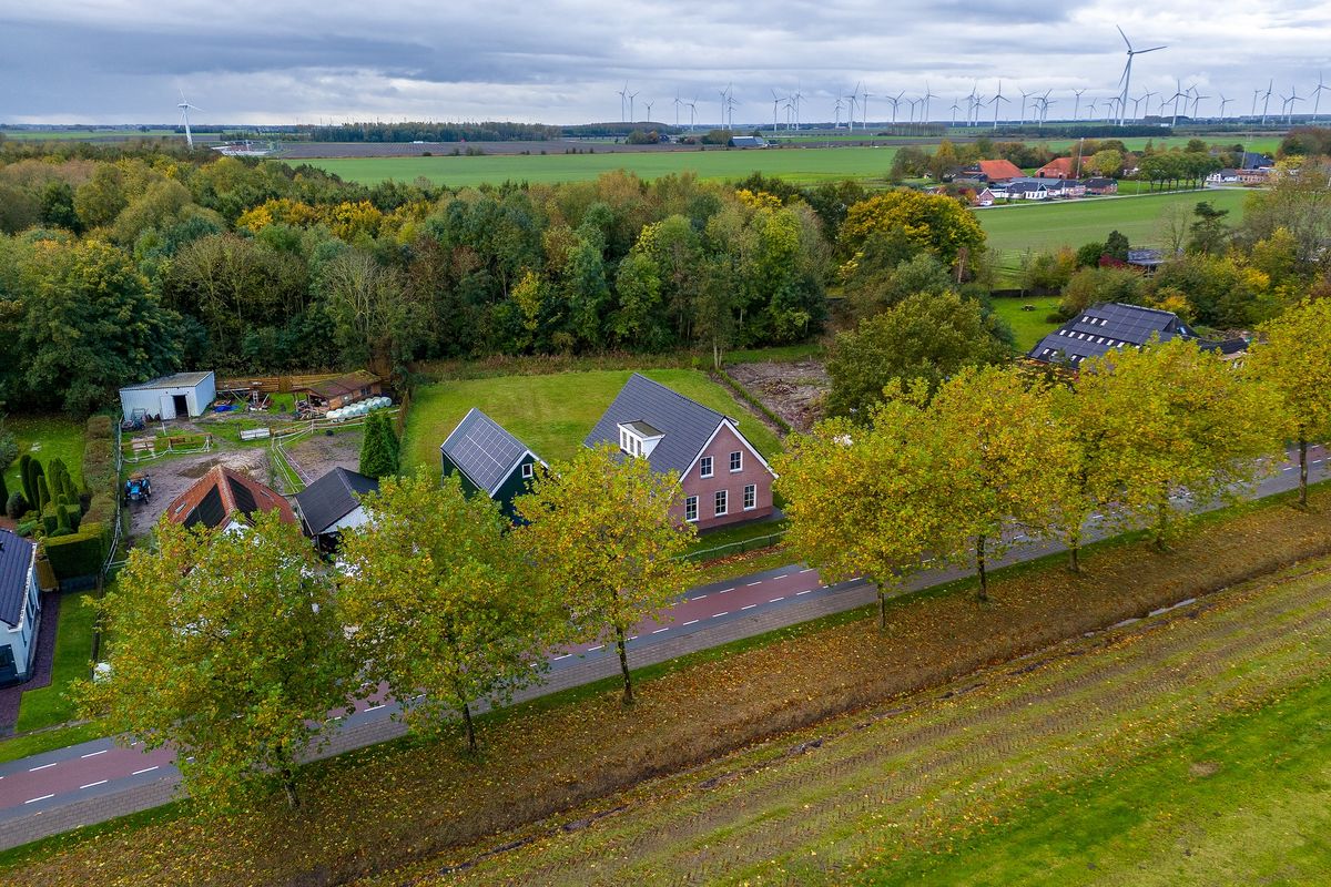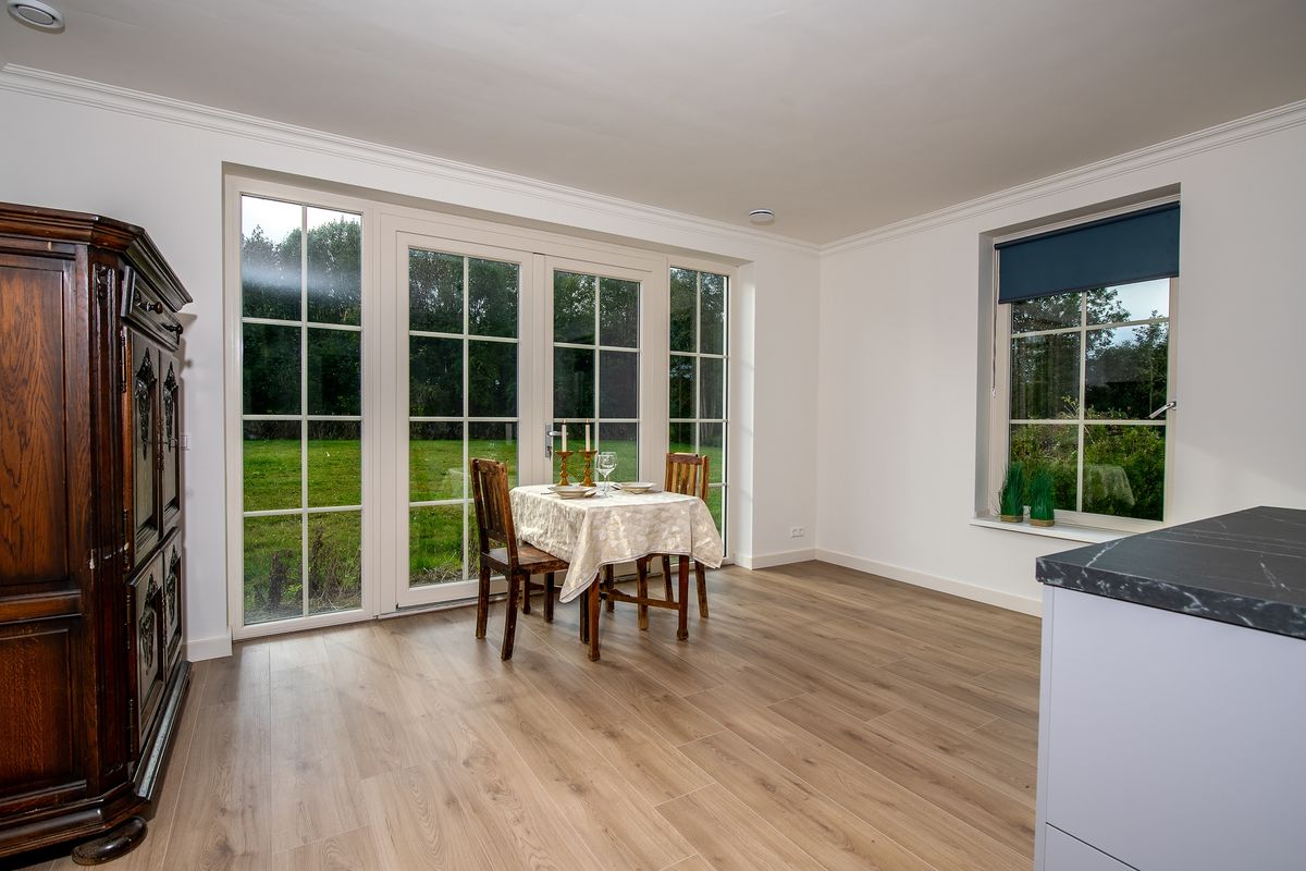 Het geheel biedt met zijn vele ramen en openslaande deuren een prachtig uitzicht op de tuin, het achtergelegen bos en de dijk langs het natuurgebied aan de Eems-Dollard.