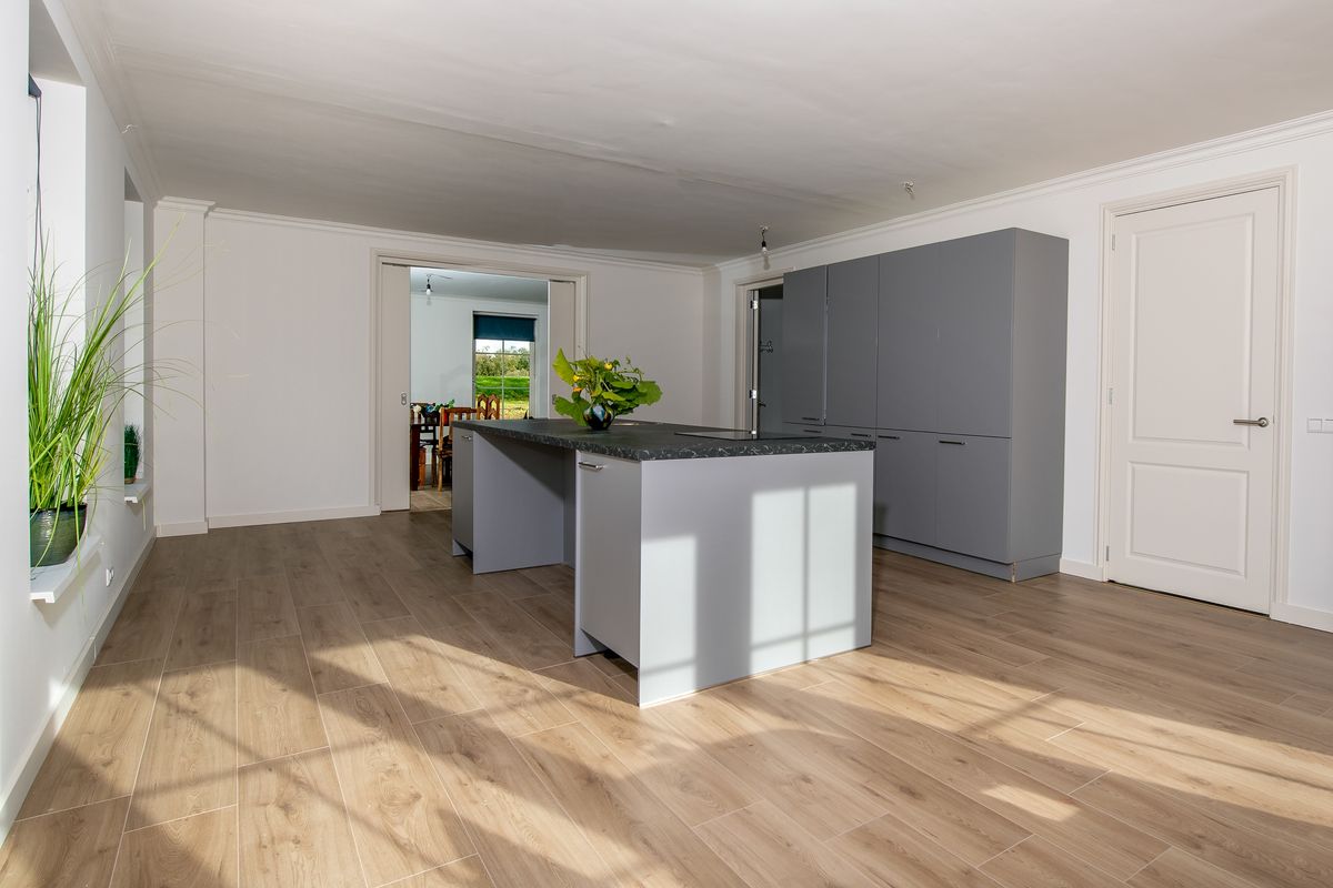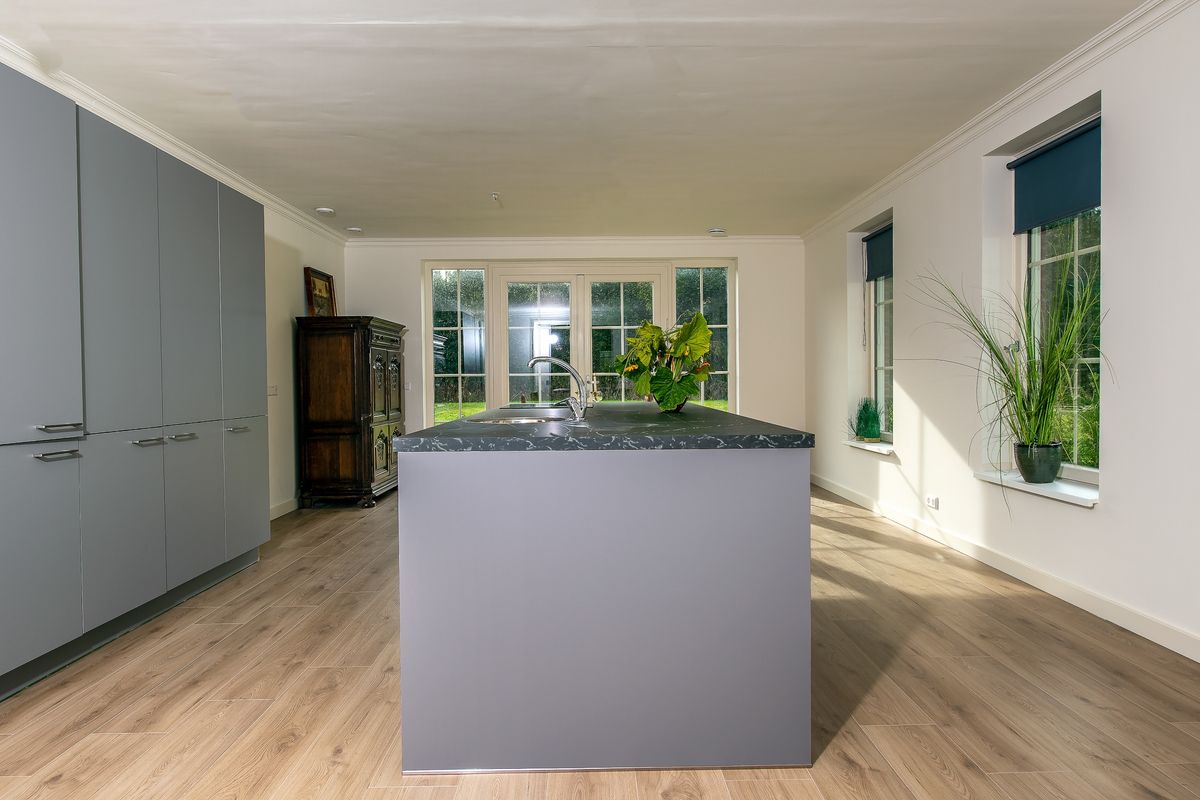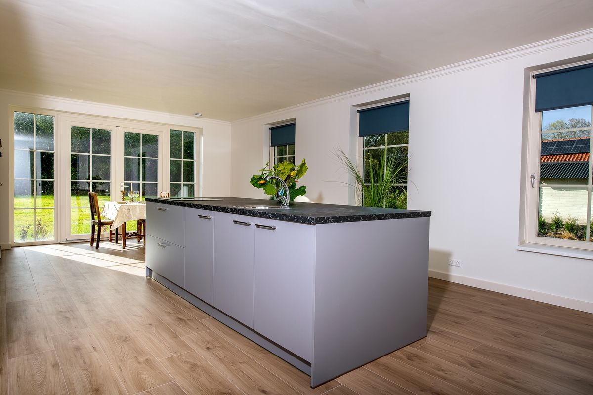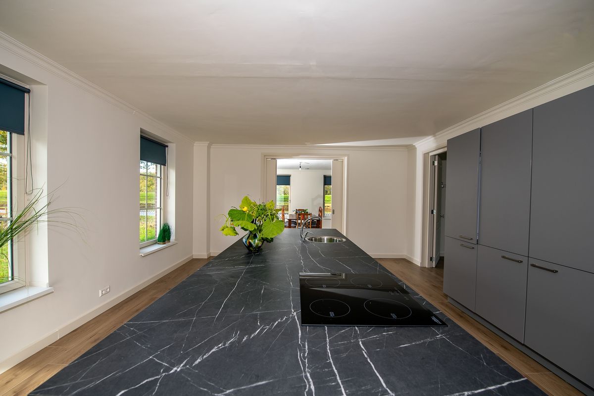 De open keuken is al ingericht met een zeer ruim eiland, maar moet nog met apparatuur verder worden uitgebreid. Een werkelijk fantastische ruimte om met vrienden en familie te koken, culinair te genieten en heerlijk te ontspannen!