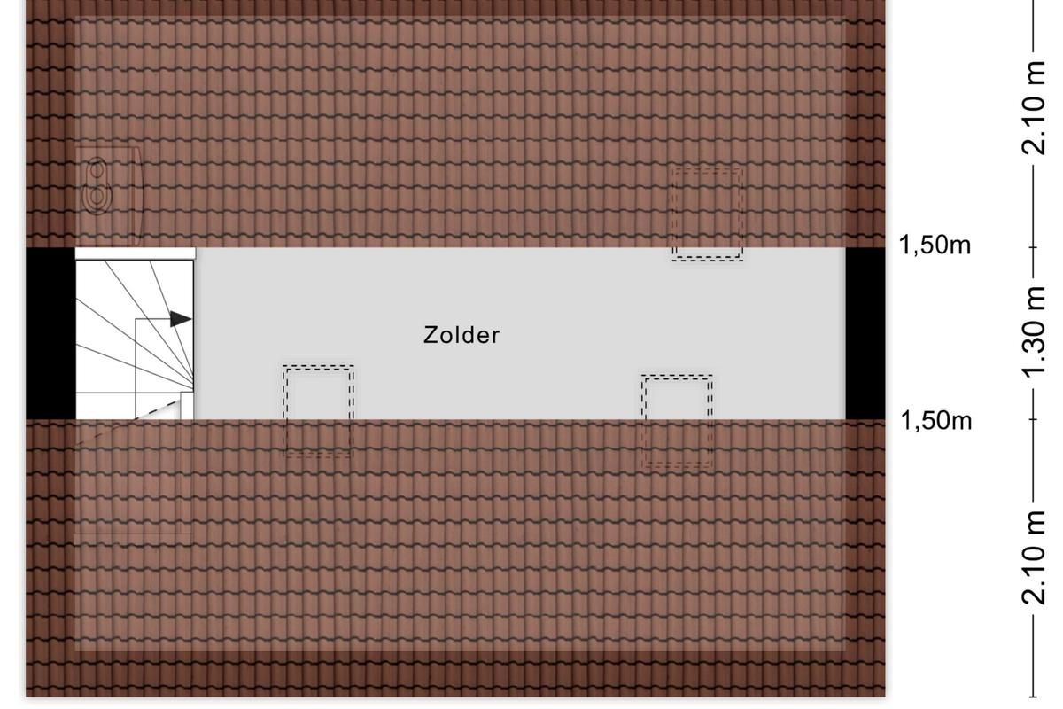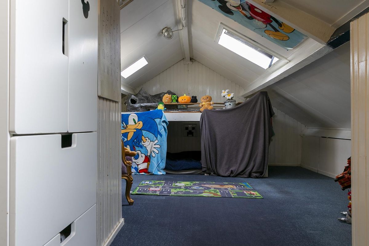 Via een vaste trap bereik je de tweede verdieping. Deze zolderverdieping biedt volop mogelijkheden – denk aan een derde slaapkamer, werkkamer of hobbyruimte. Op deze verdieping treffen we de opstelplaats van de Intergas huurketel uit 2024.