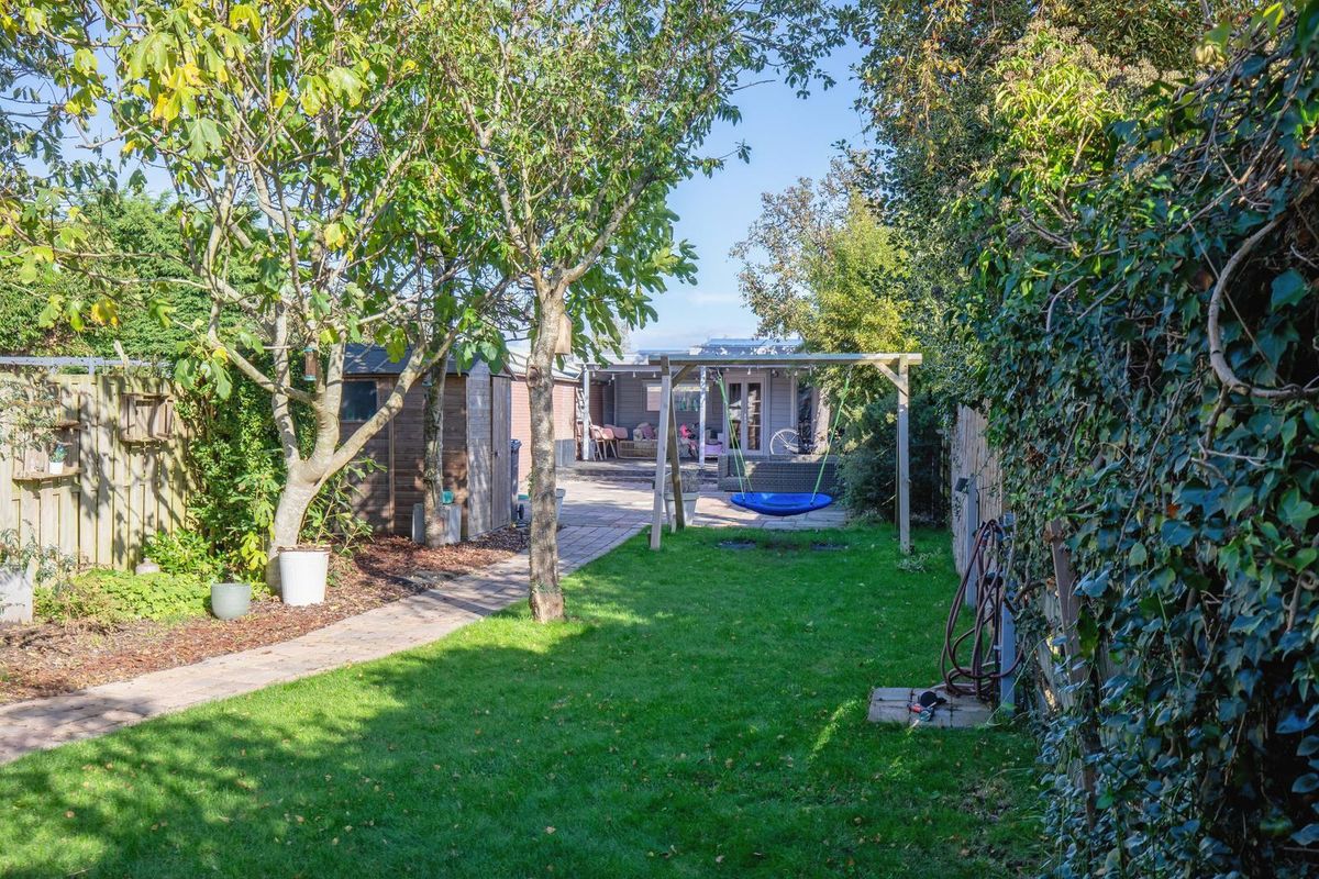 De achtertuin heeft een diepte van circa 37 meter! Hier is altijd wel een zonnig plekje te vinden of juist een plekje in de schaduw. Voor kinderen is dit een leuke plek om te spelen, of wat dacht u van een eigen moestuintje? Aan de achterzijde is een vrijstaande houten berging (voorzien van elektra) en er is zicht op de landerijen van de Hoge Berg. De voortuin is voorzien van tegelwerk.